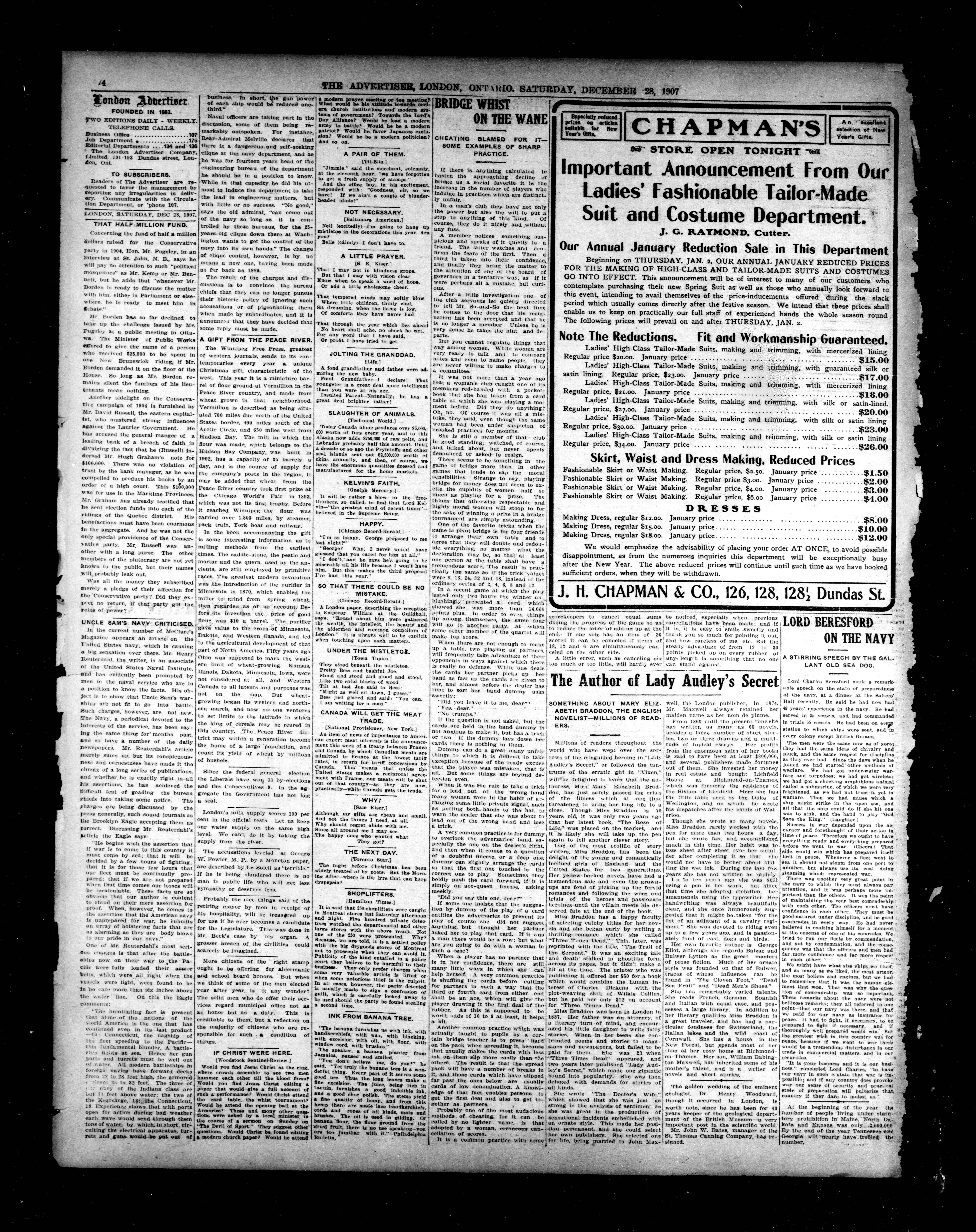 - London Advertiser : 44th Year, No. 19235 (December 28, 1907)