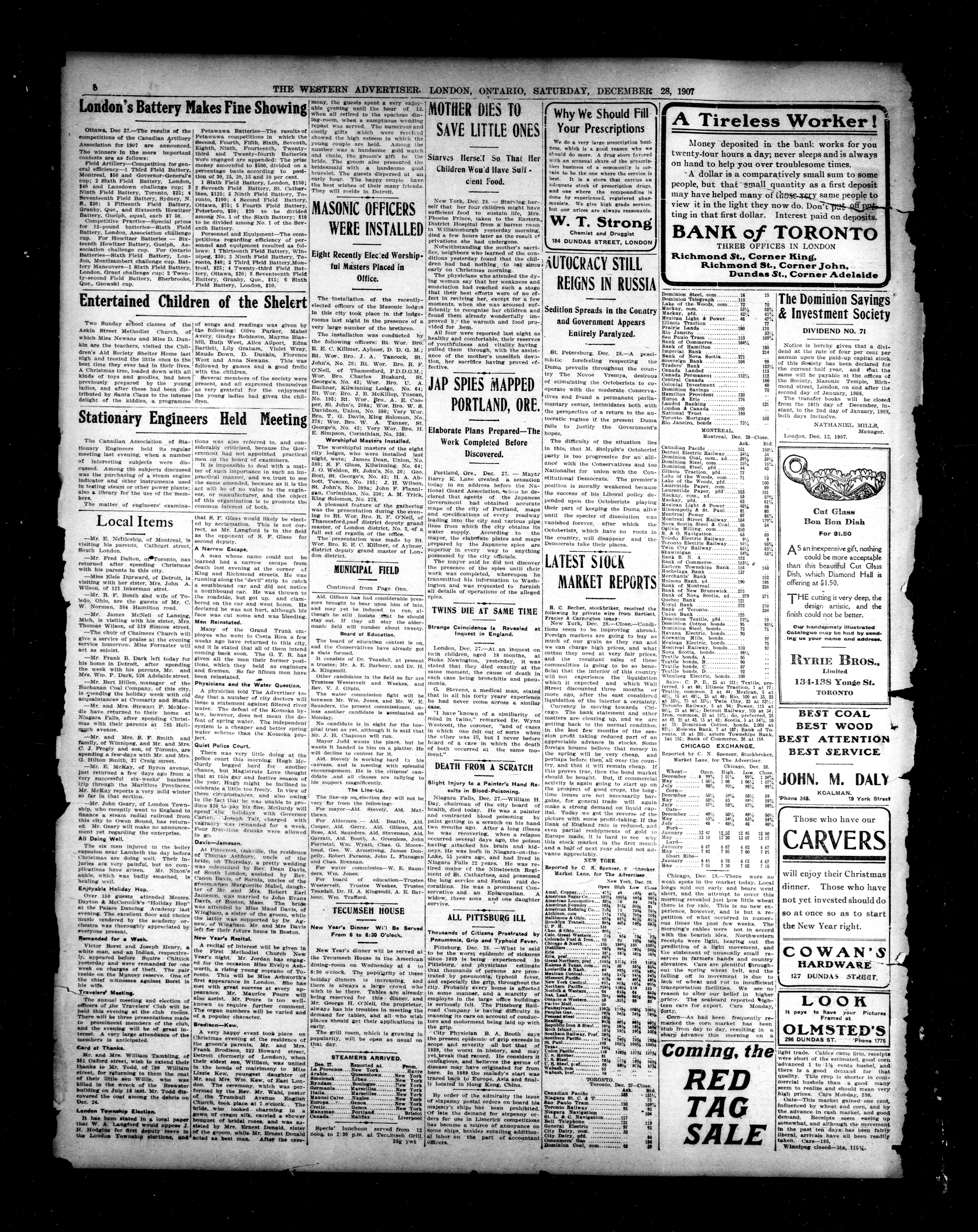- London Advertiser : 44th Year, No. 19235 (December 28, 1907)