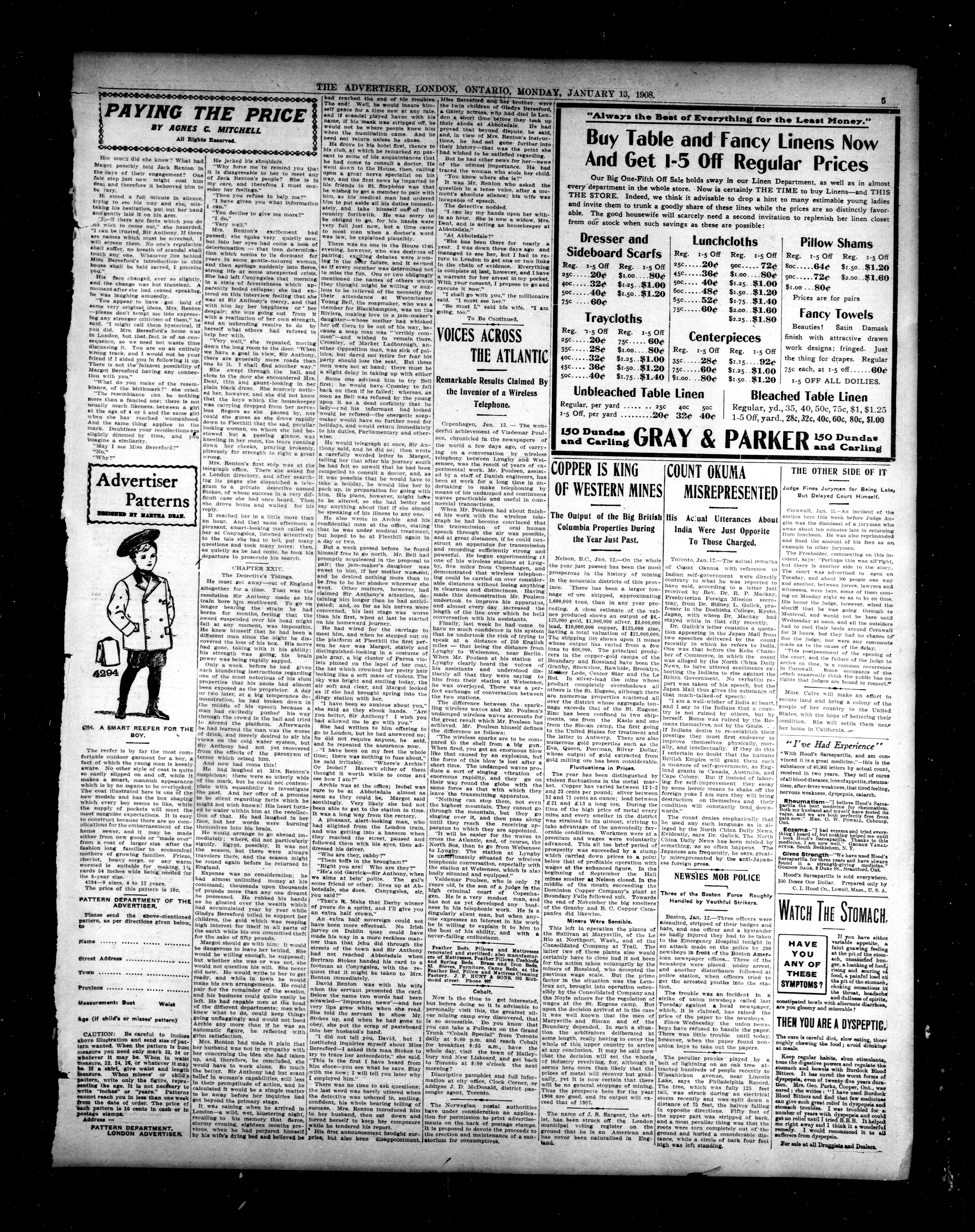 London advertiser. : London Advertiser : 44th Year, No. 19248 (January 13, 1908)