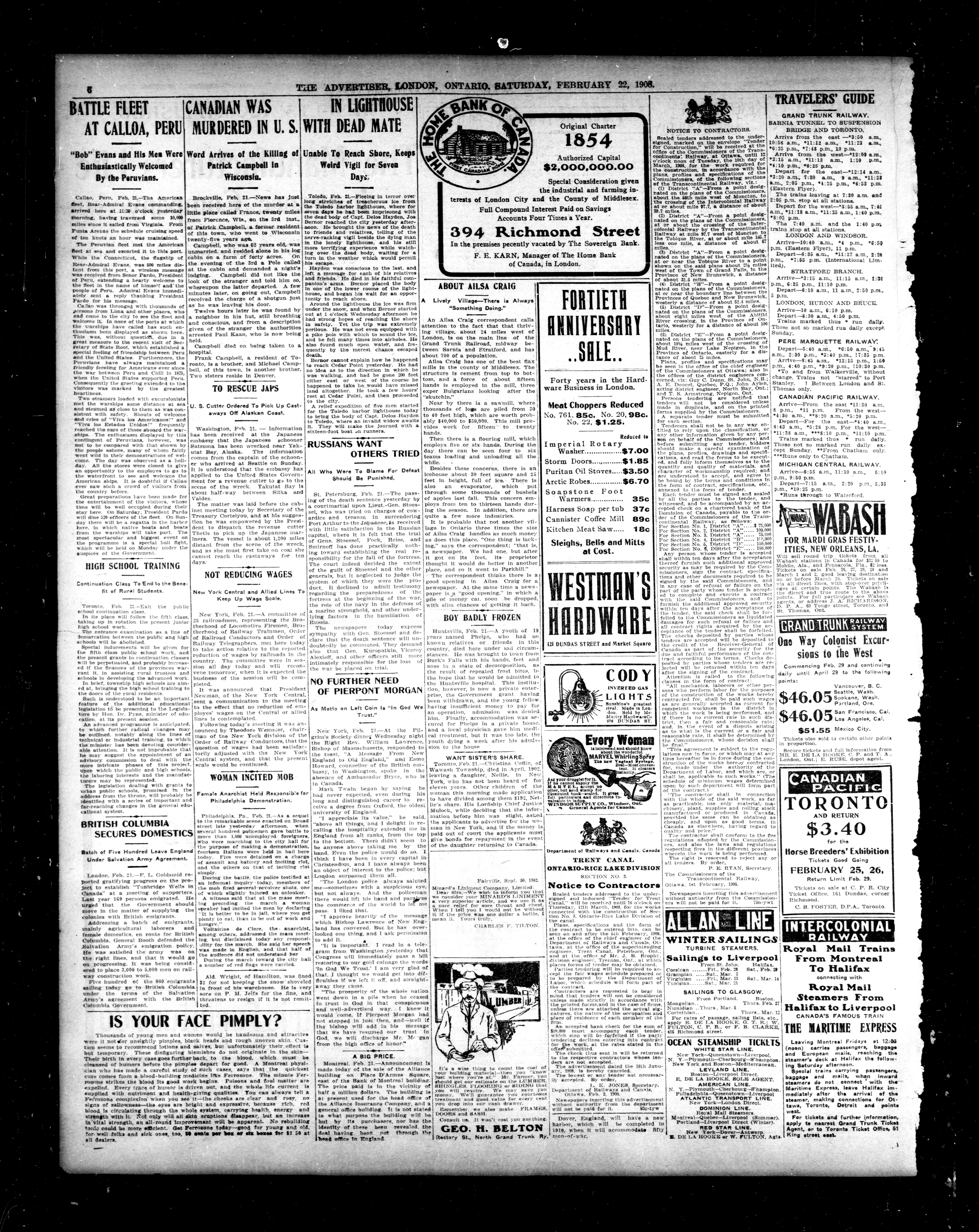 - London Advertiser : 44th Year, No. 19283 (February 22, 1908)