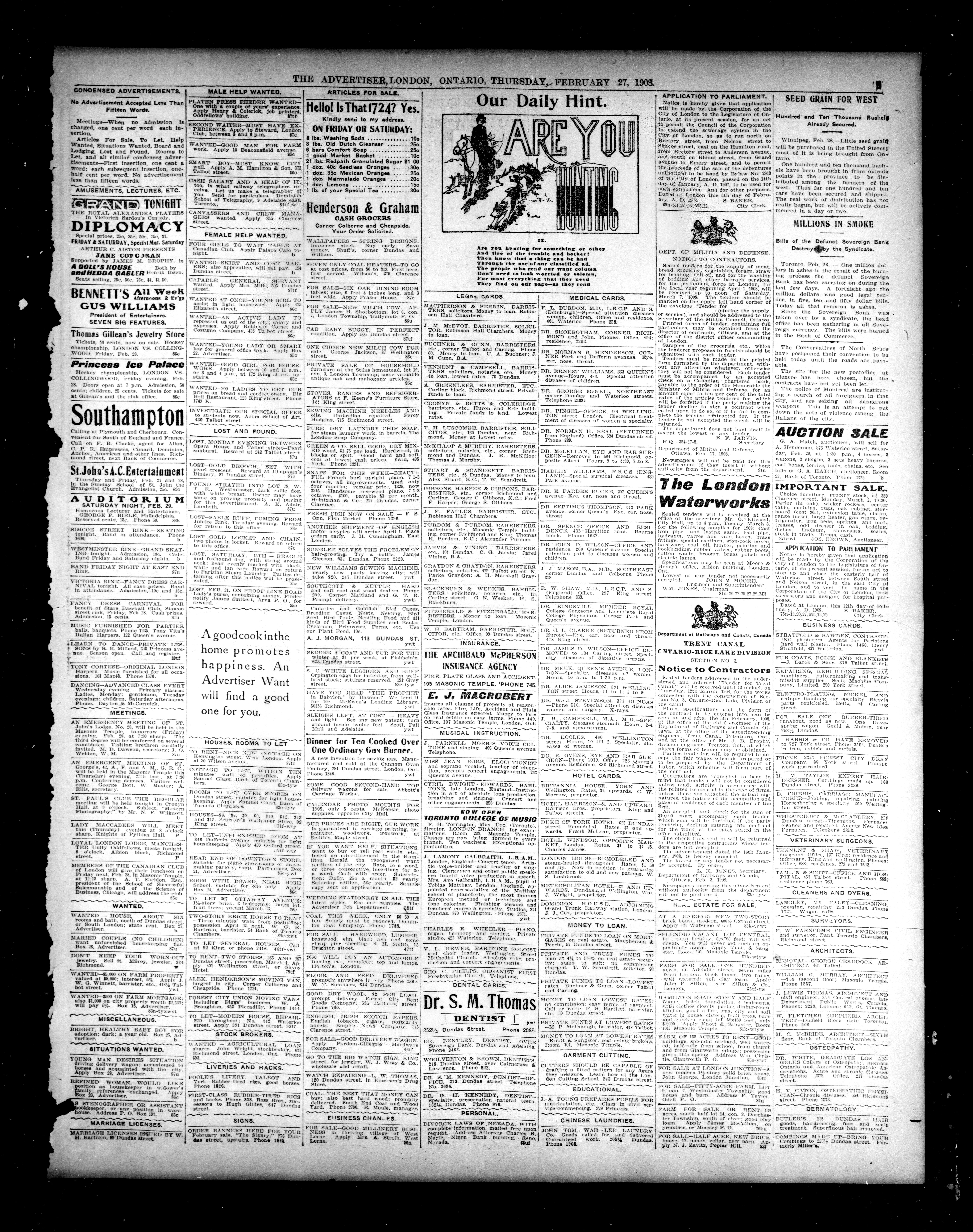 London advertiser. : London Advertiser : 44th Year, No. 19287 (February 27, 1908)