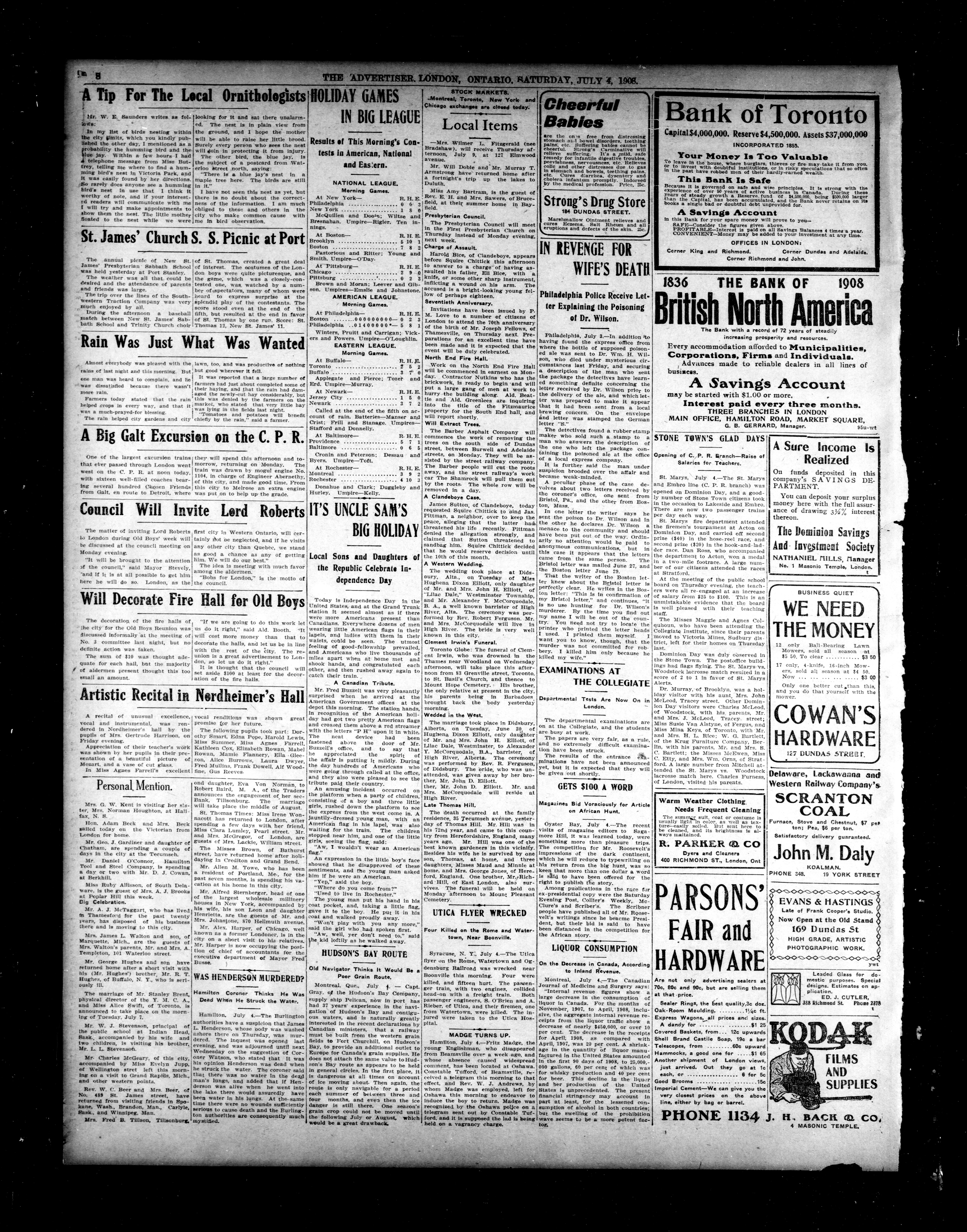 - London Advertiser : 45th Year, No. 19397 (July 4, 1908)