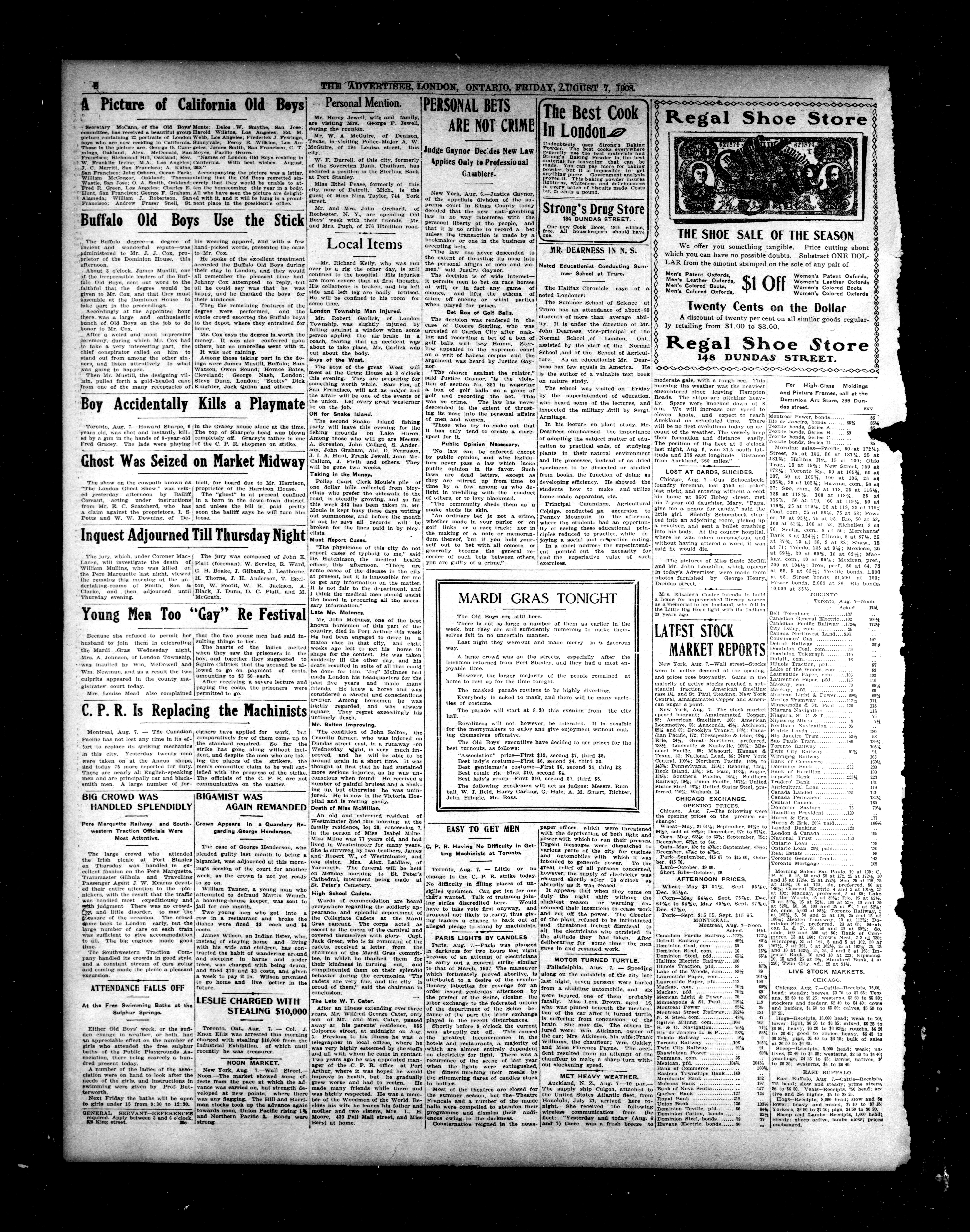 London advertiser. : London Advertiser : 45th Year, No. 19426 (August 7, 1908)