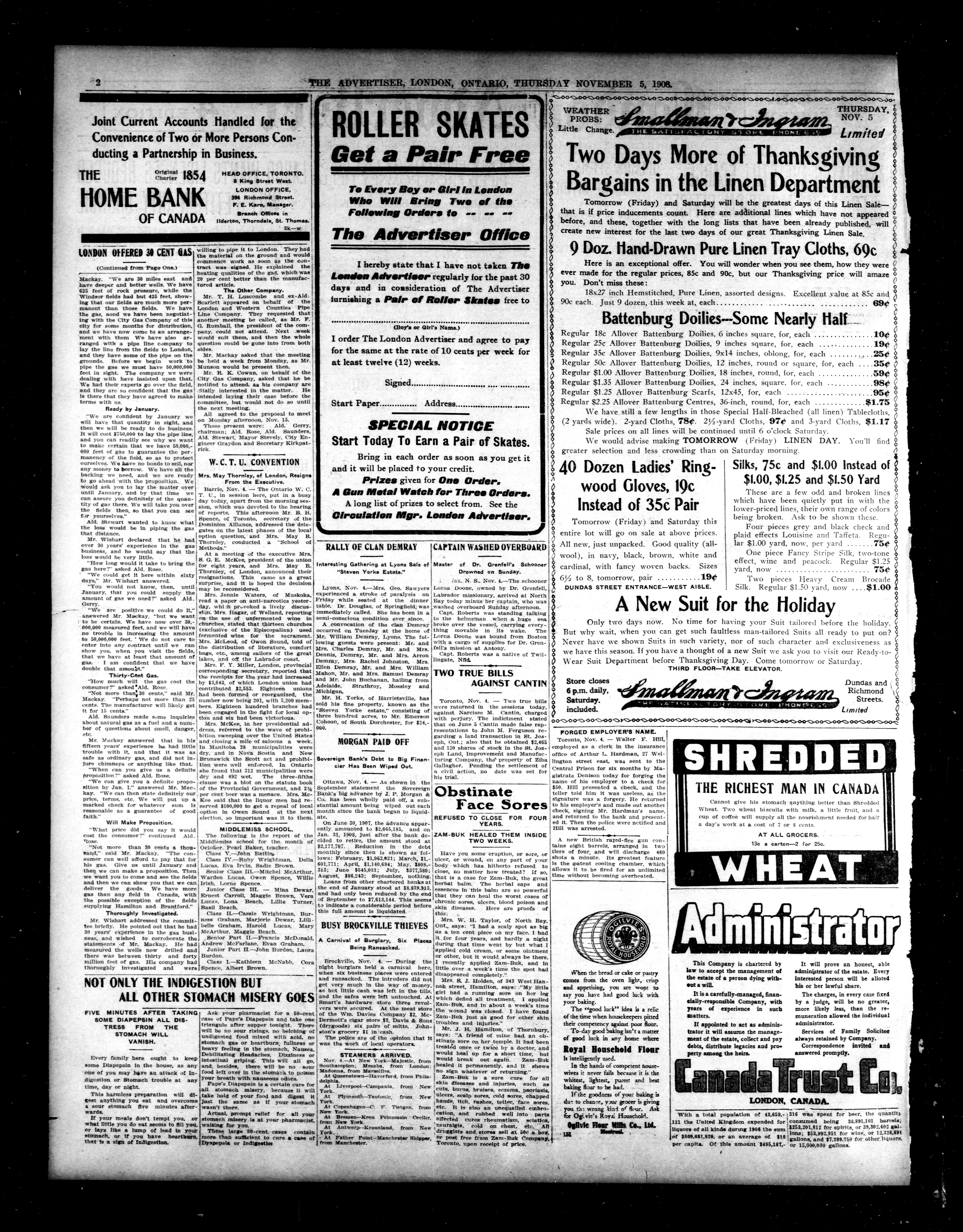 London advertiser. : London Advertiser : 45th Year, No. 19503 (November 5, 1908)