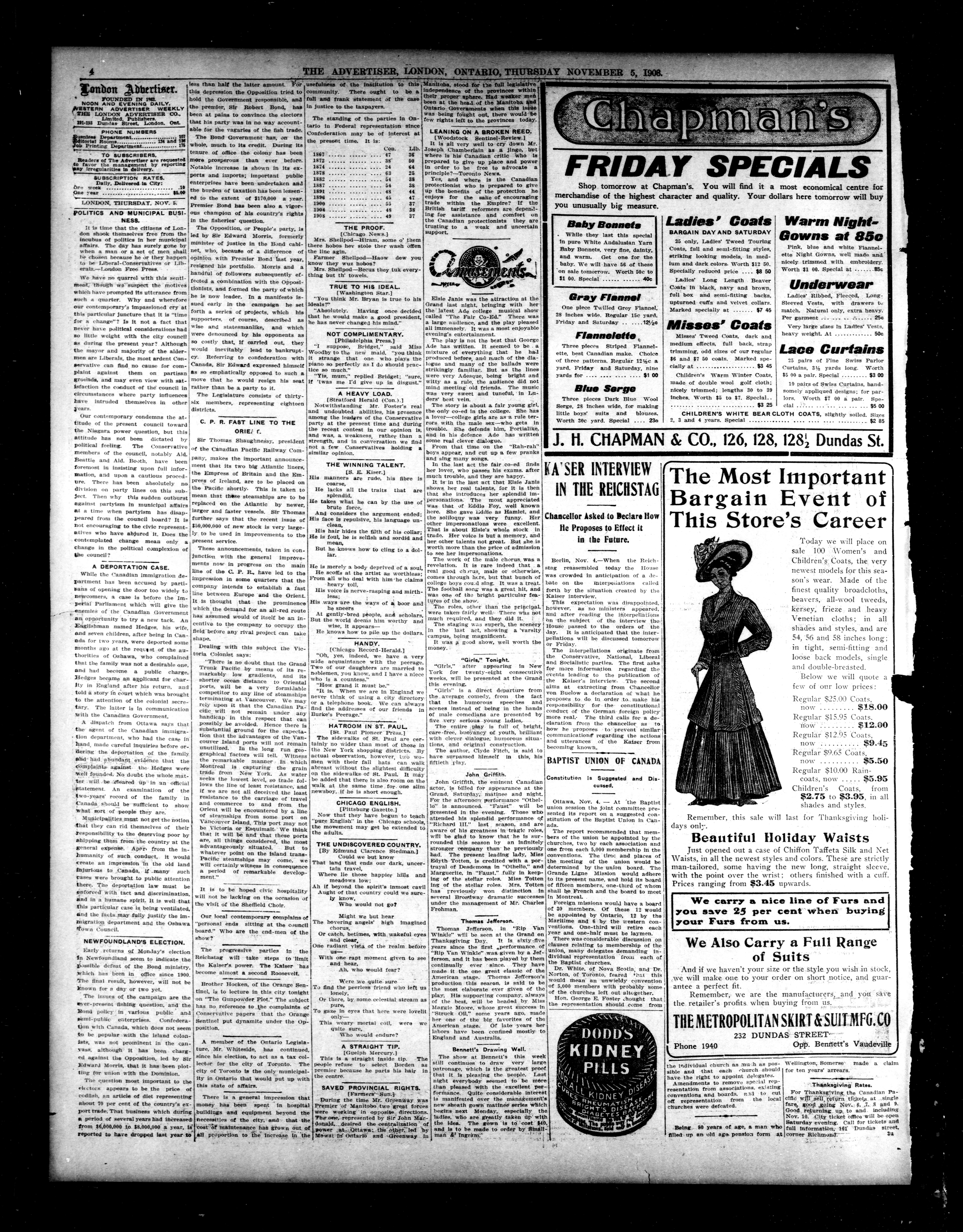 London advertiser. : London Advertiser : 45th Year, No. 19503 (November 5, 1908)