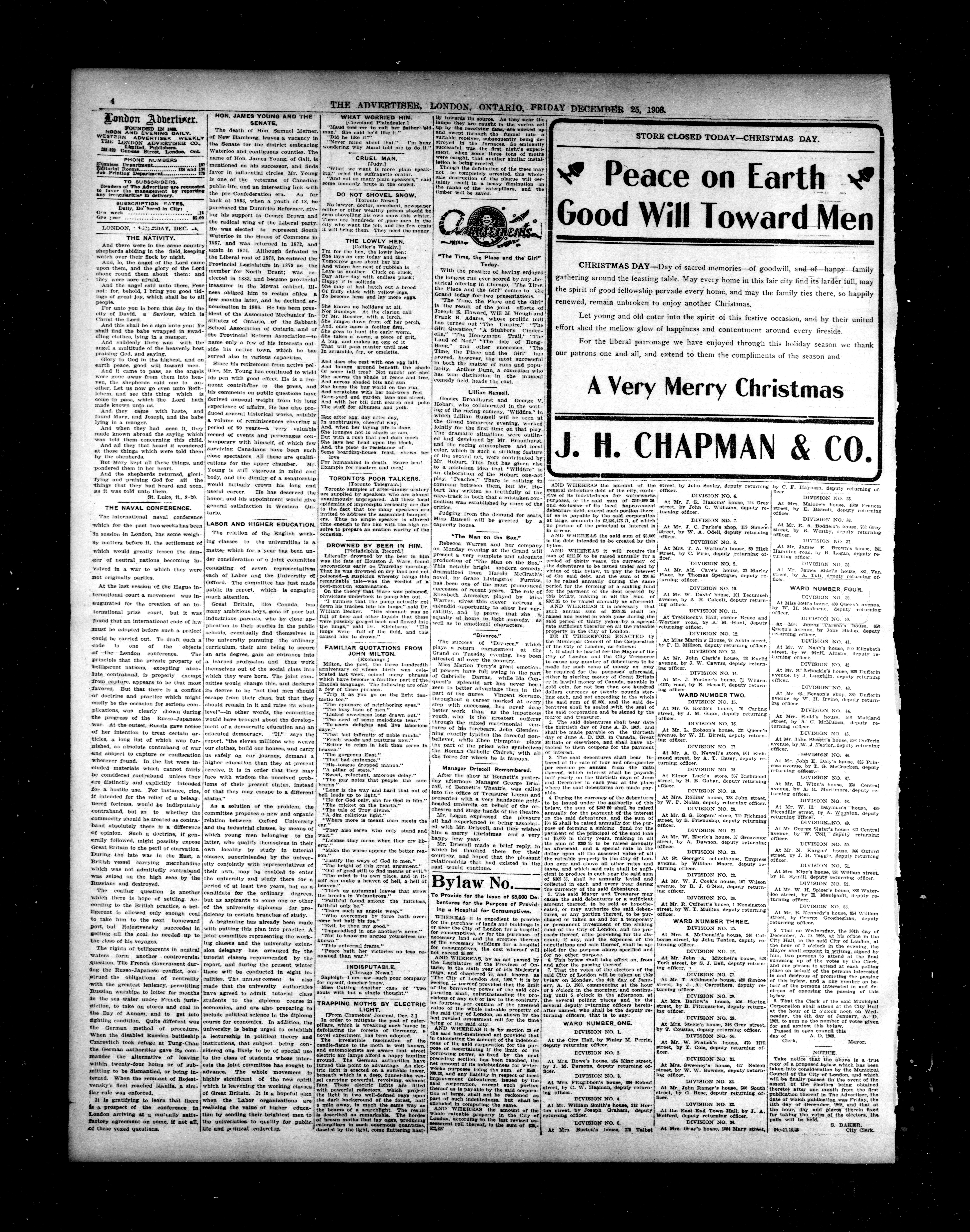 London advertiser. : London Advertiser : 46th Year, No. 19546 (December 25, 1908)