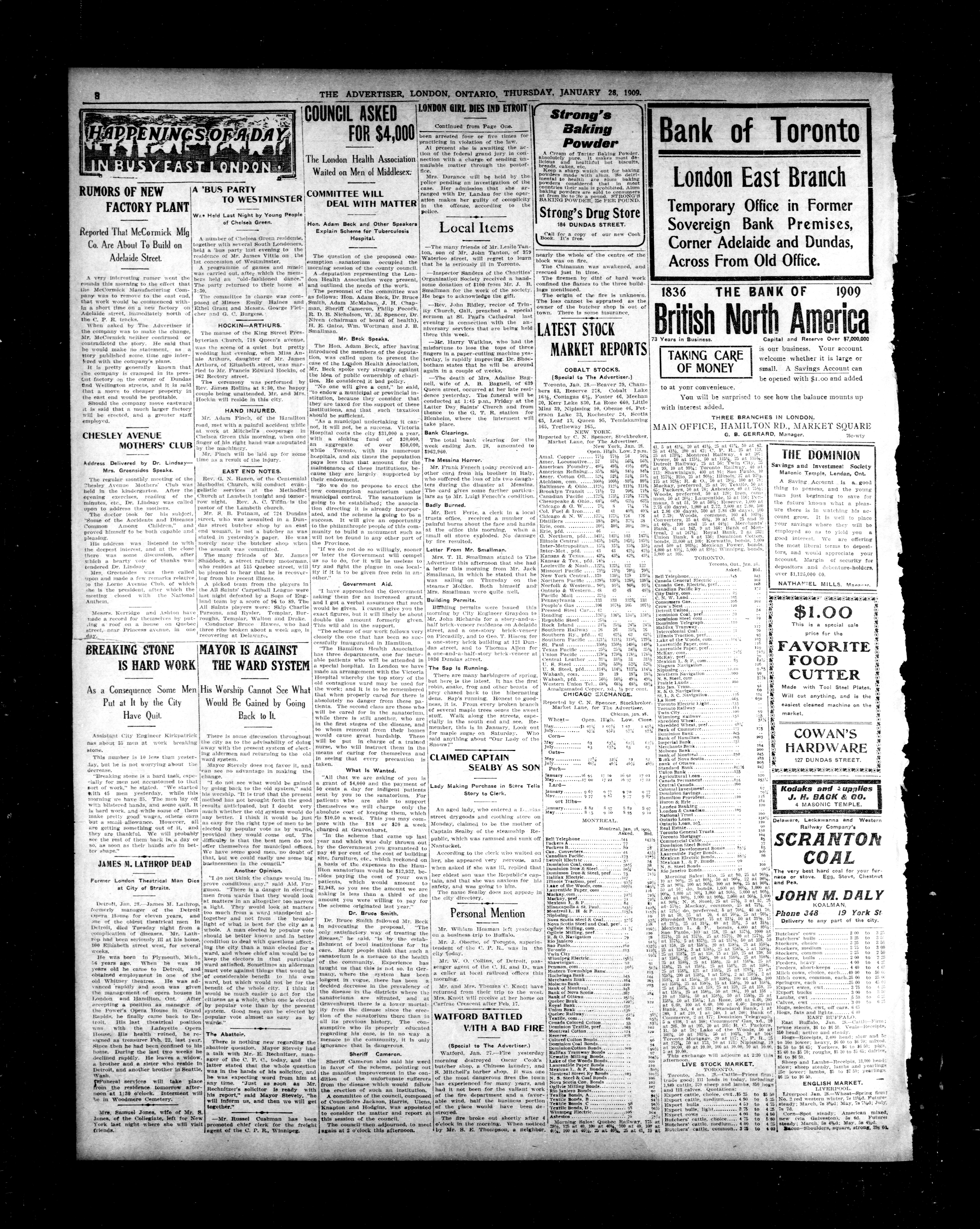 London advertiser. : London Advertiser : 46th Year, No. 19575 (January 28, 1909)