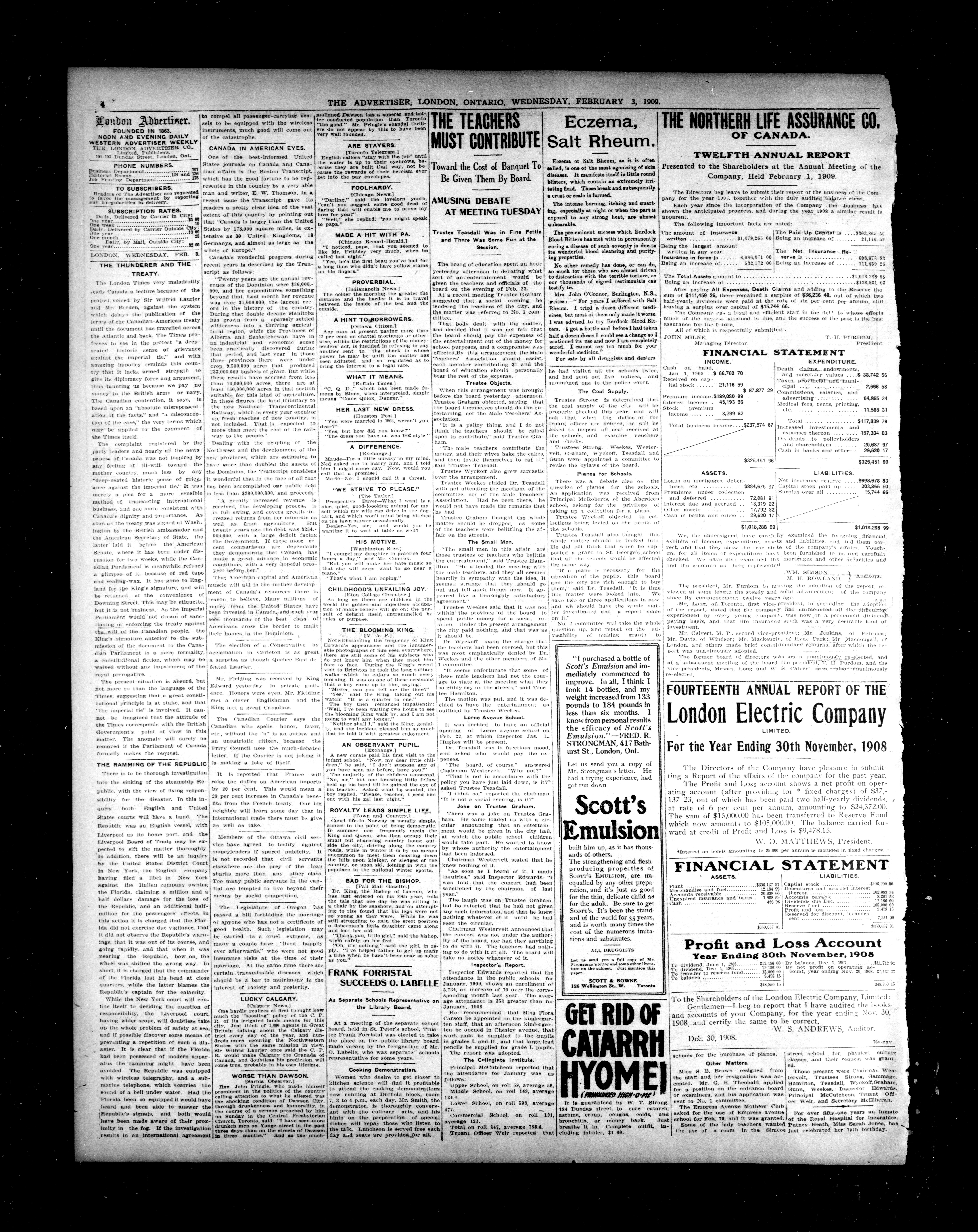London Advertiser : 46th Year, No. 19580 (February 3, 1909)