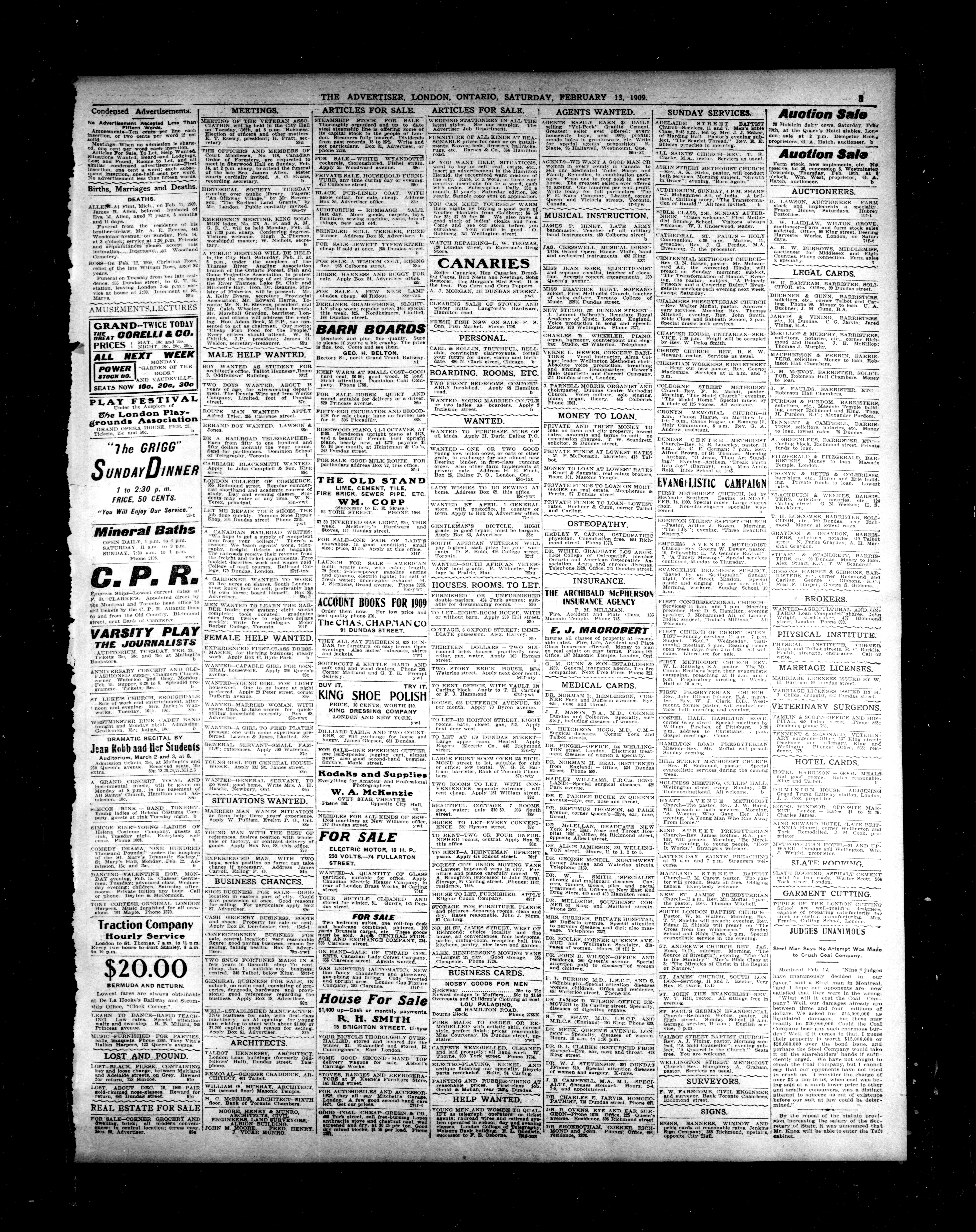 - London Advertiser : 46th Year, No. 19589 (February 13, 1909)