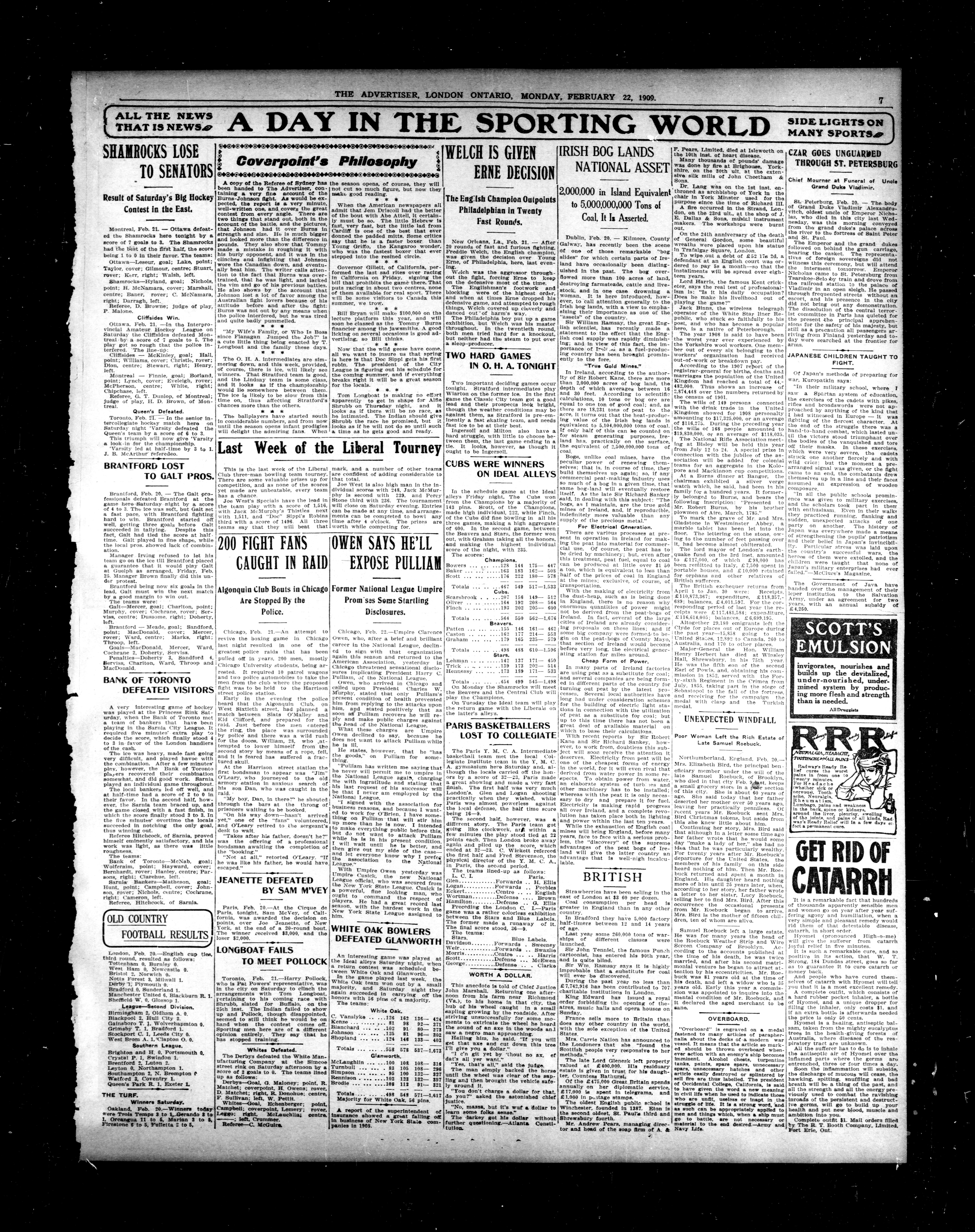 London advertiser. : London Advertiser : 46th Year, No. 19596 (February 22, 1909)