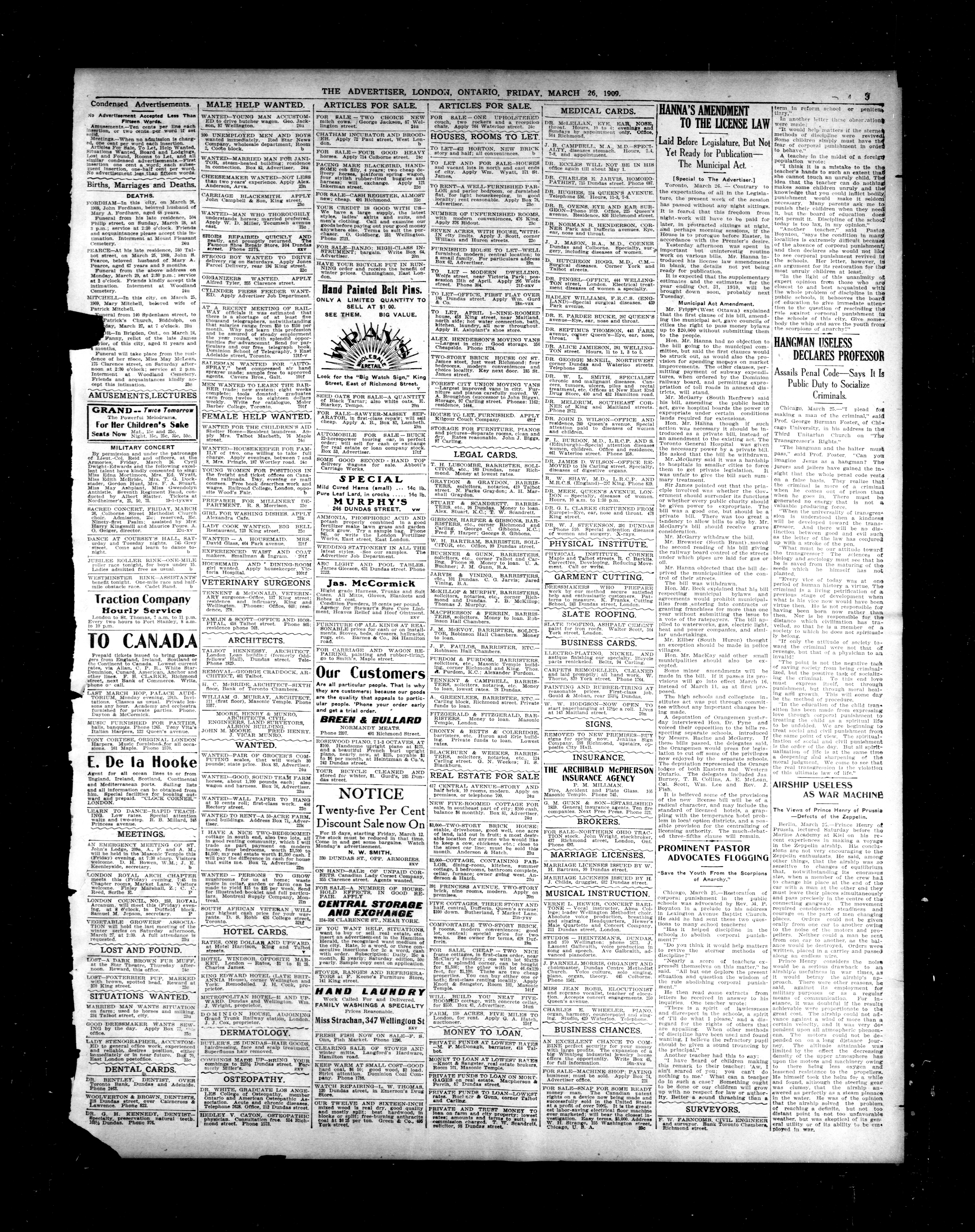 London advertiser. : London Advertiser : 46th Year, No. 19624 (March 26, 1909)
