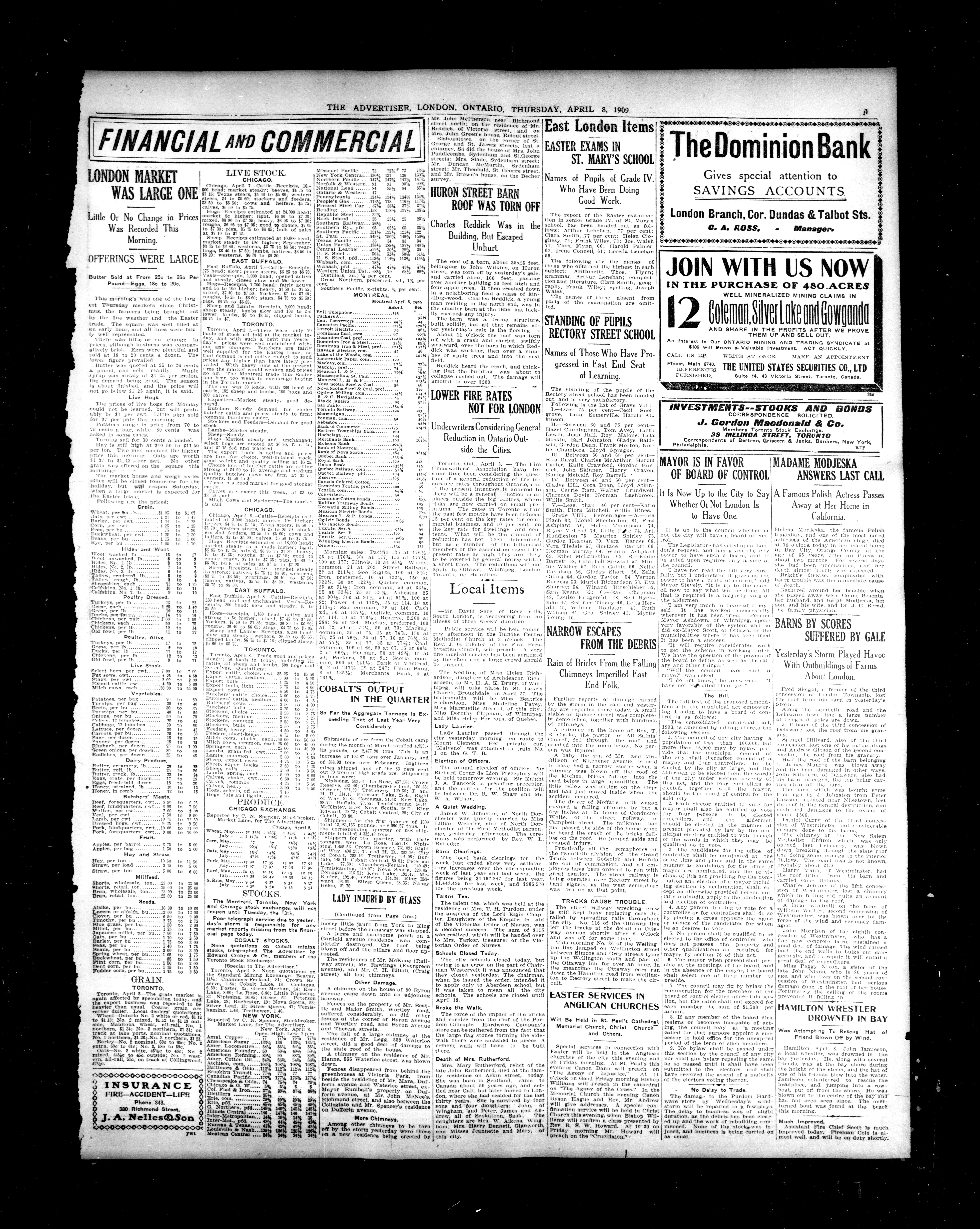 London advertiser. : London Advertiser : 46th Year, No. 19635 (April 8, 1909)