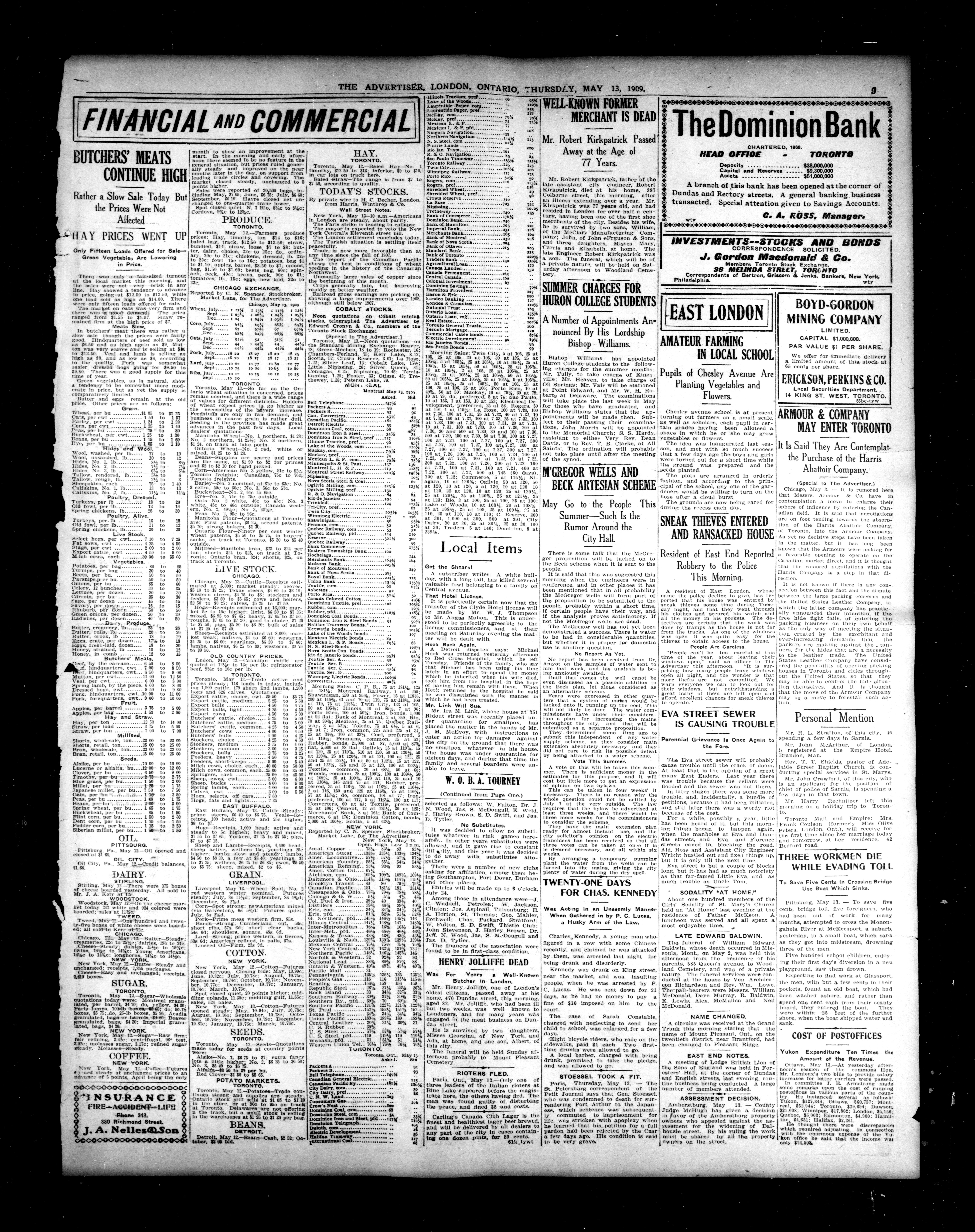 London advertiser. : London Advertiser : 46th Year, No. 19665 (May 13, 1909)