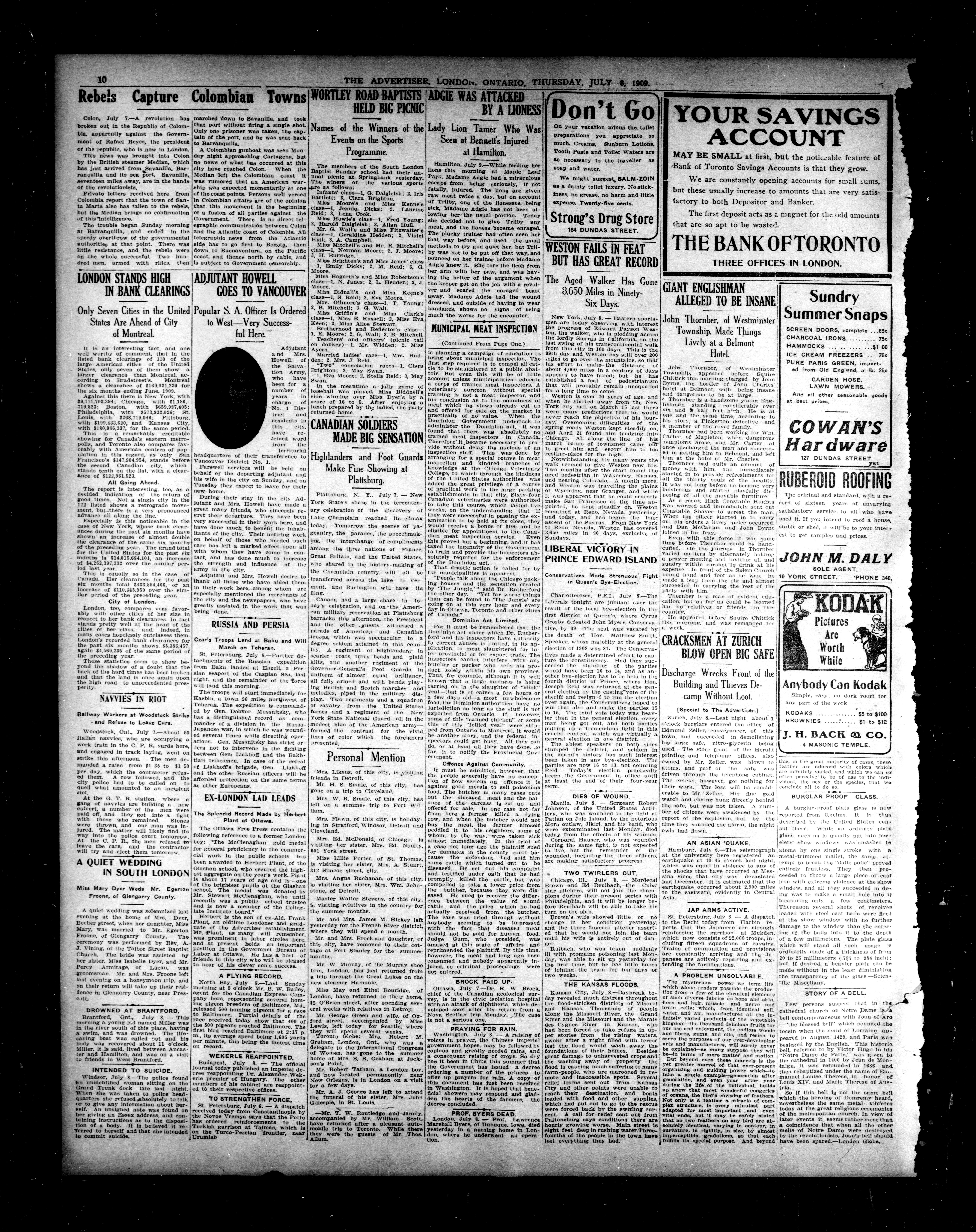 London advertiser. : London Advertiser : 46th Year, No. 19713 (July 8, 1909)