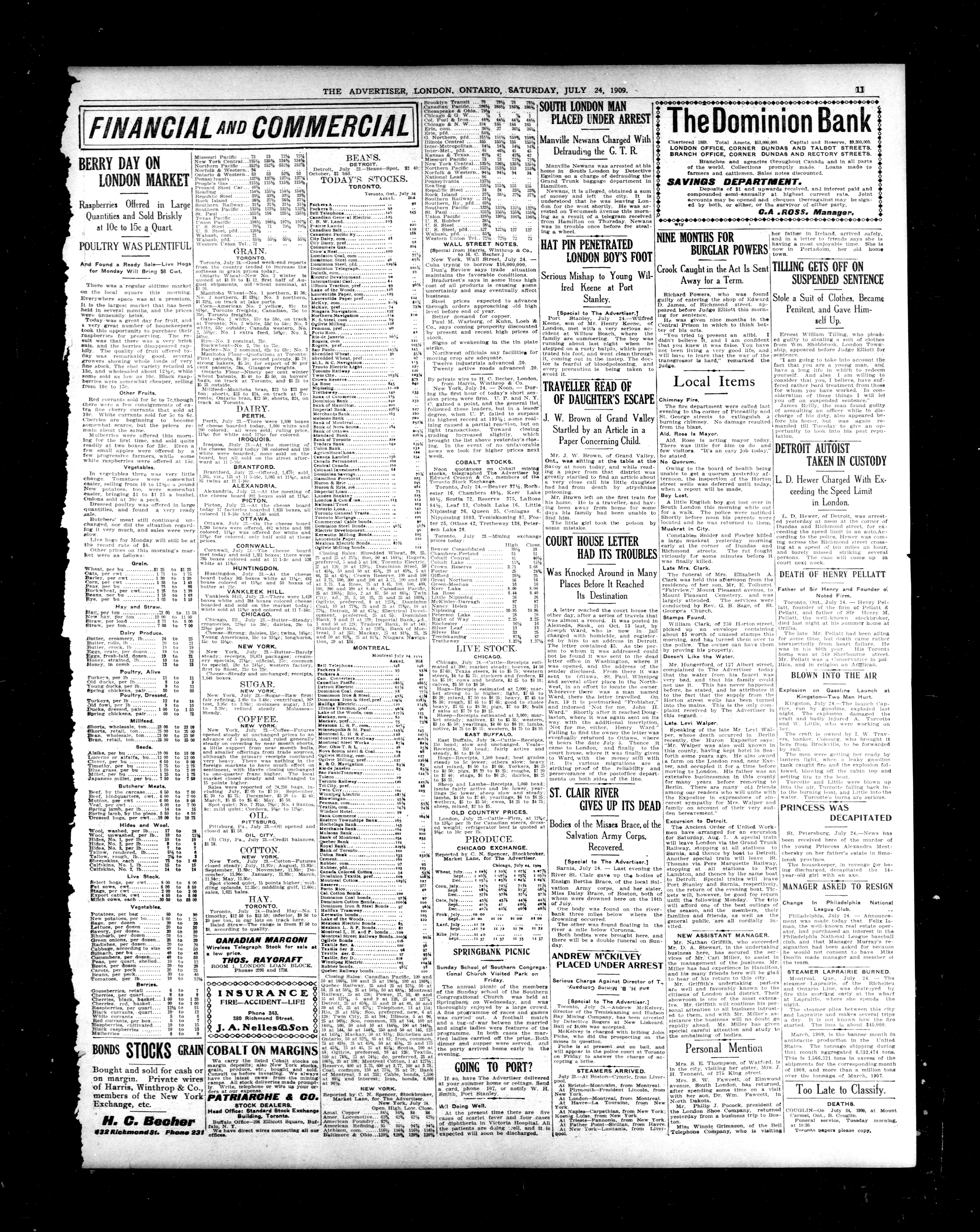 London advertiser. : London Advertiser : 46th Year, No. 19727 (July 24, 1909)