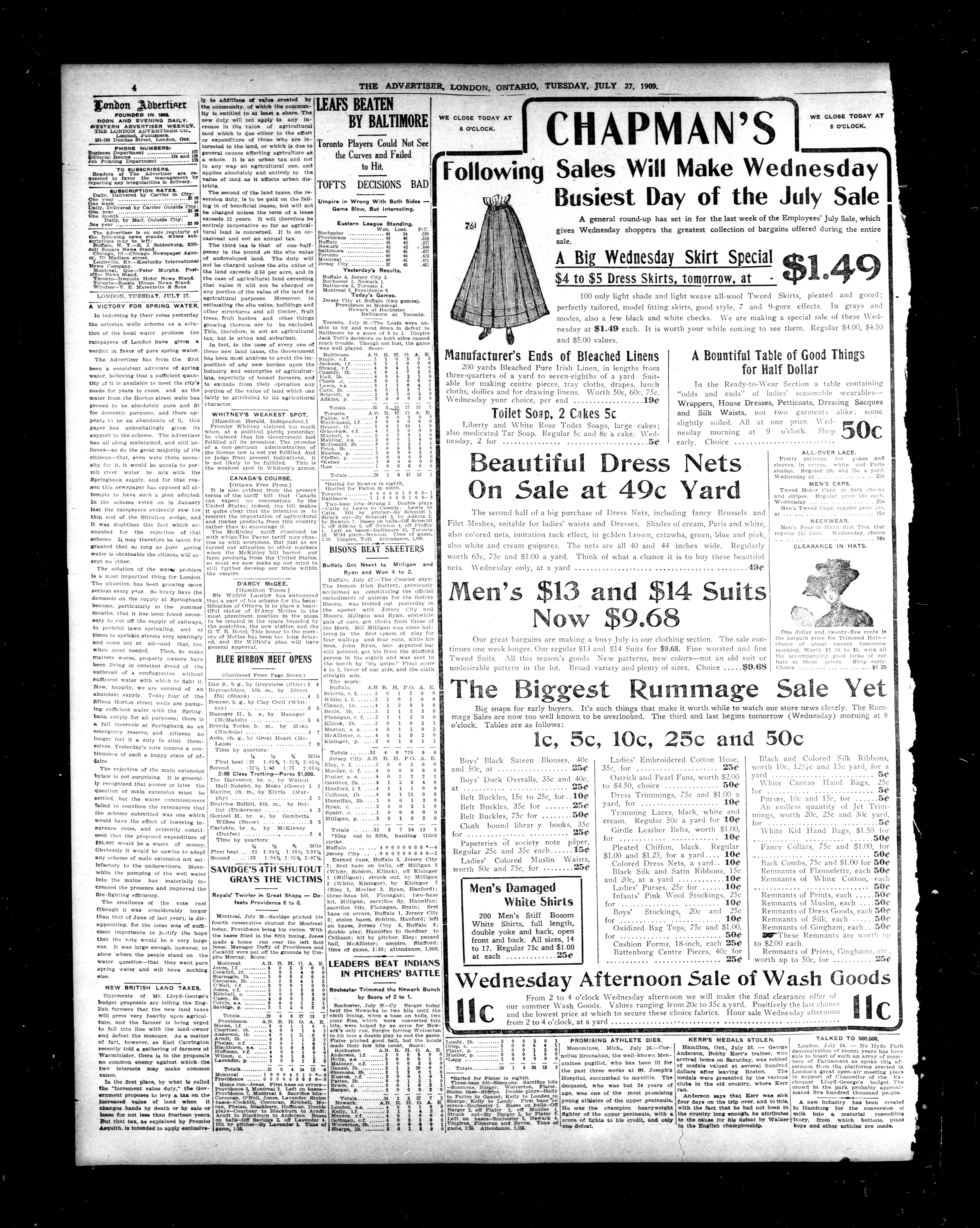 London advertiser. : London Advertiser : 46th Year, No. 19729 (July 27, 1909)