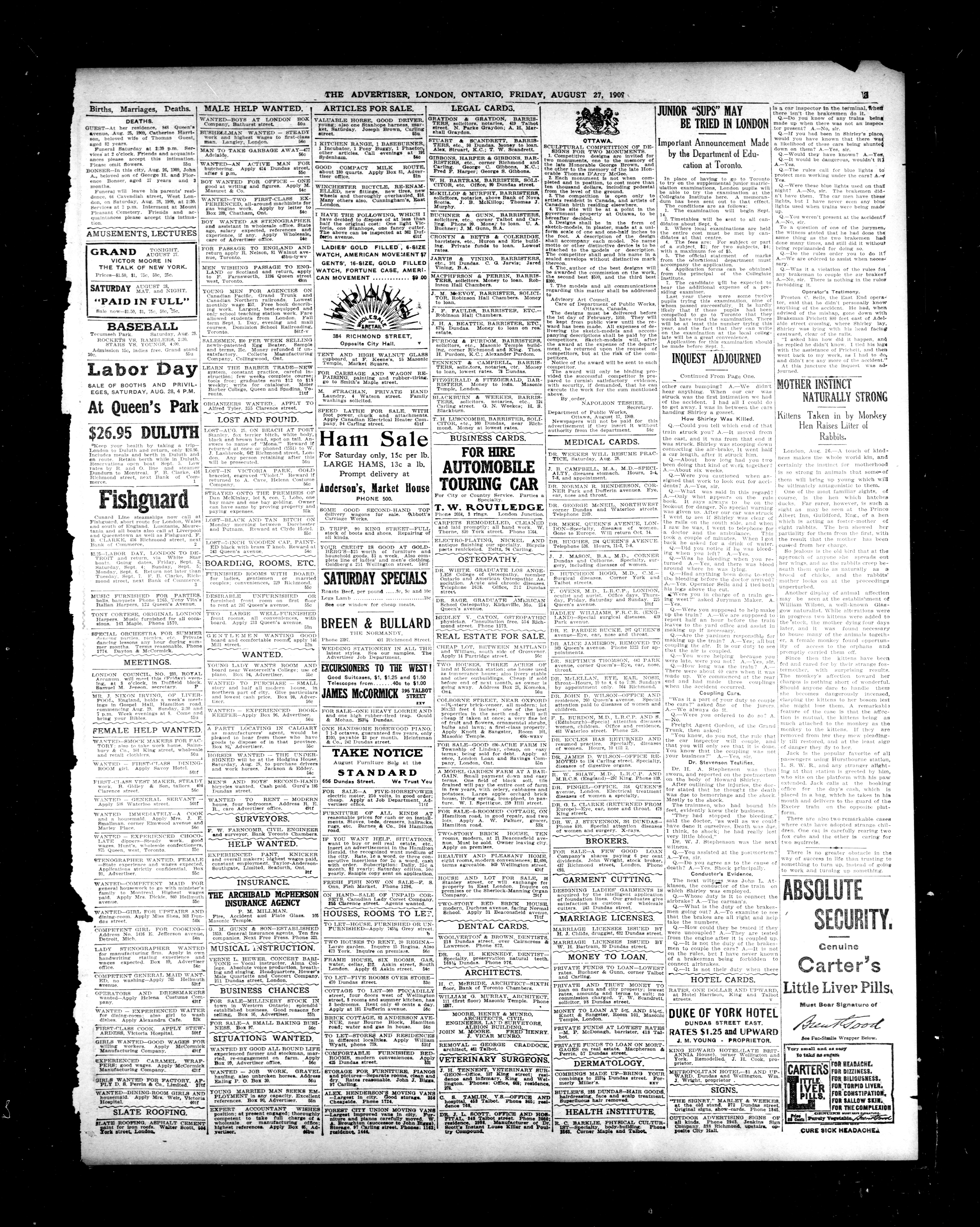 - London Advertiser : 46th Year, No. 19756 (August 27, 1909)