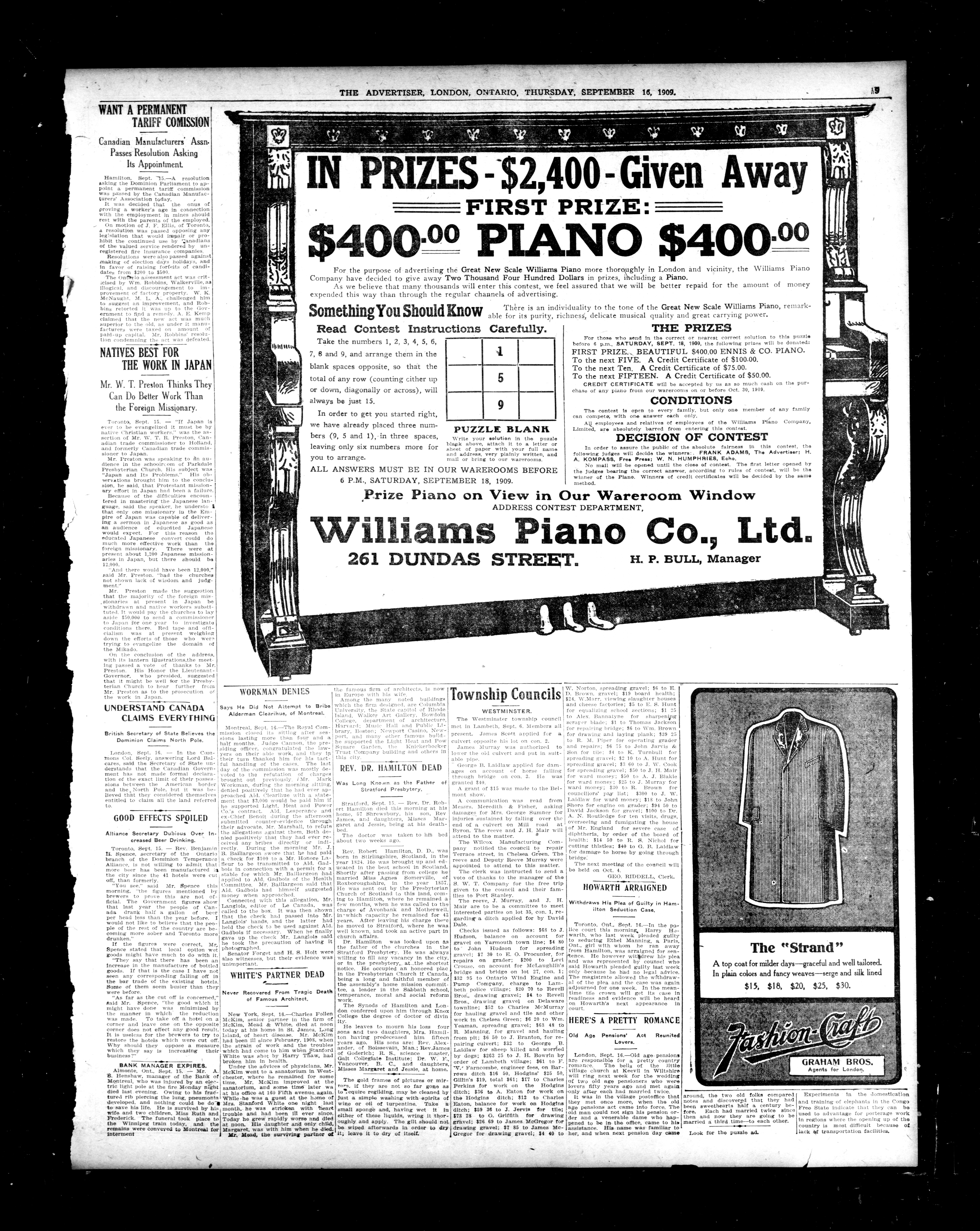 London advertiser. : London Advertiser : 46th Year, No. 19773 (September 16, 1909)