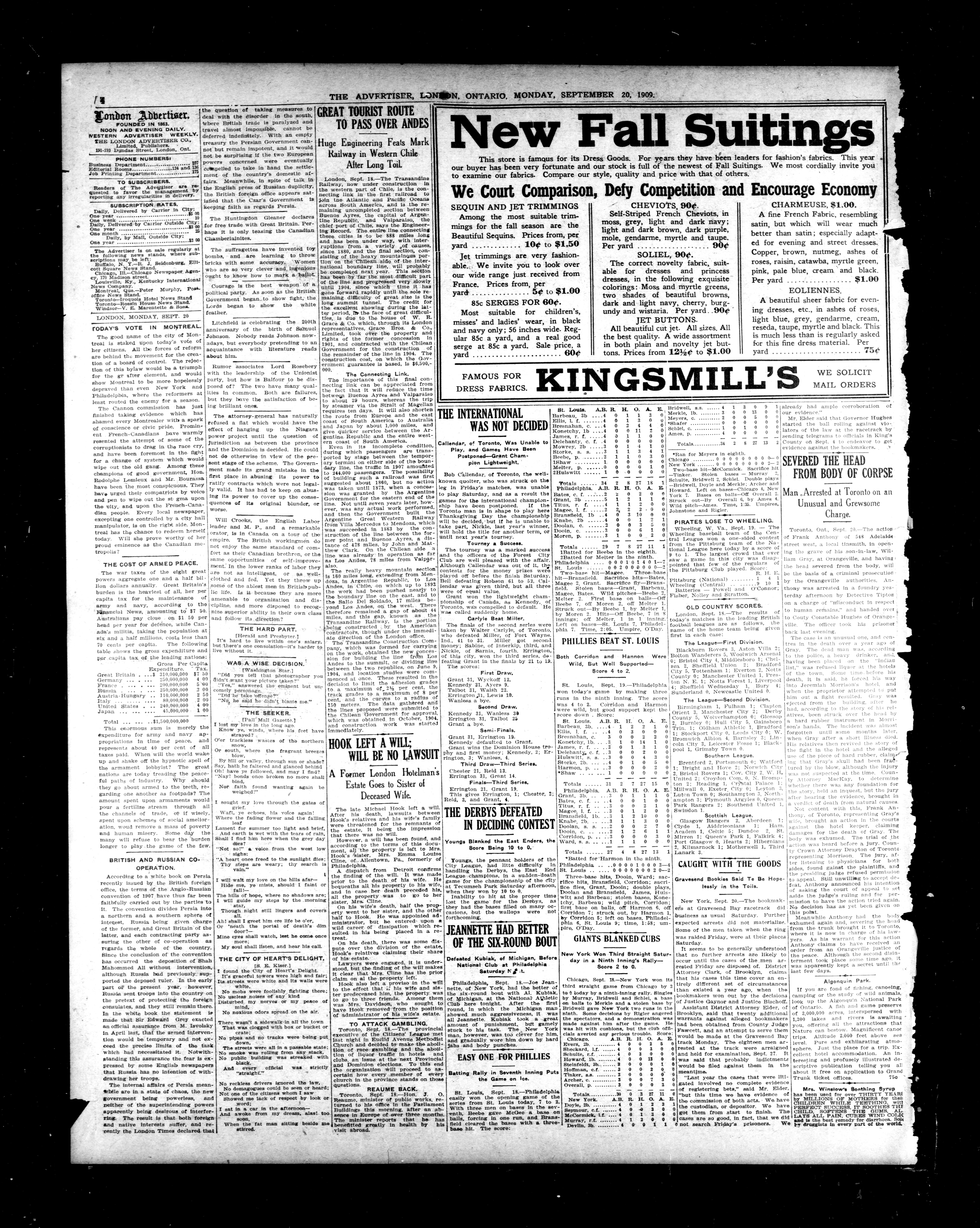 - London Advertiser : 46th Year, No. 19776 (September 20, 1909)