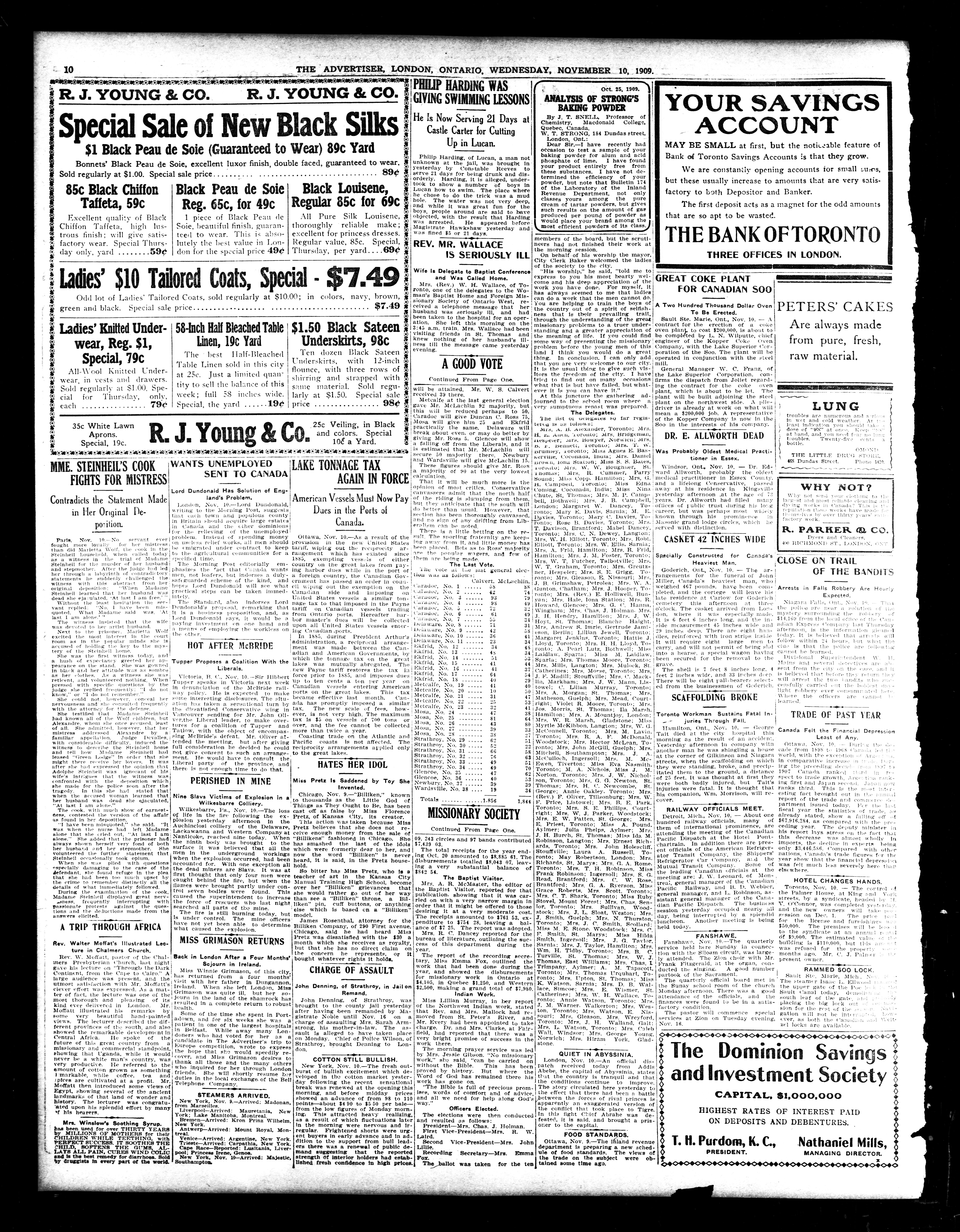London advertiser. : London Advertiser : 46th Year, No. 19820 (November 10, 1909)