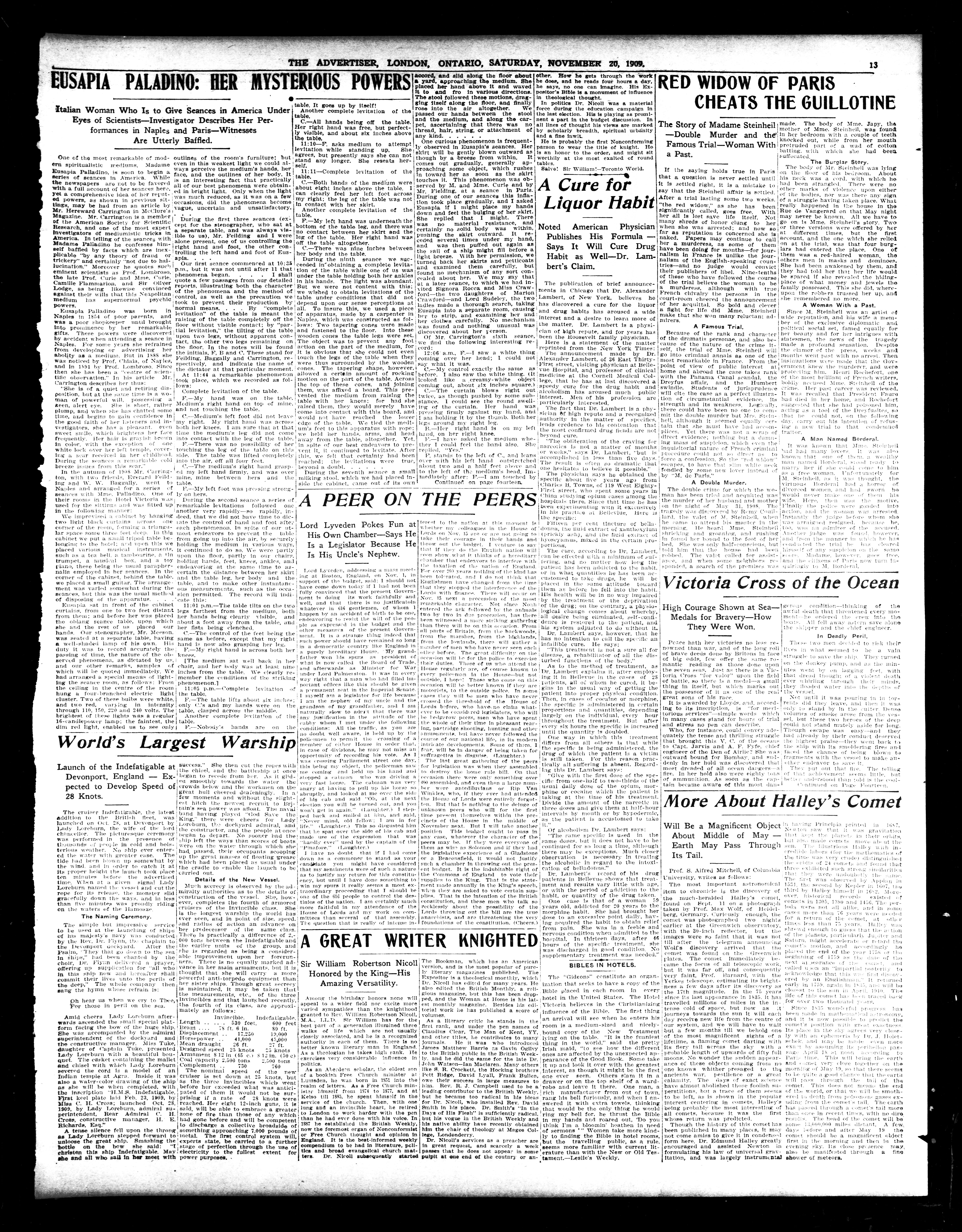 - London Advertiser : 46th Year, No. 19829 (November 20, 1909)