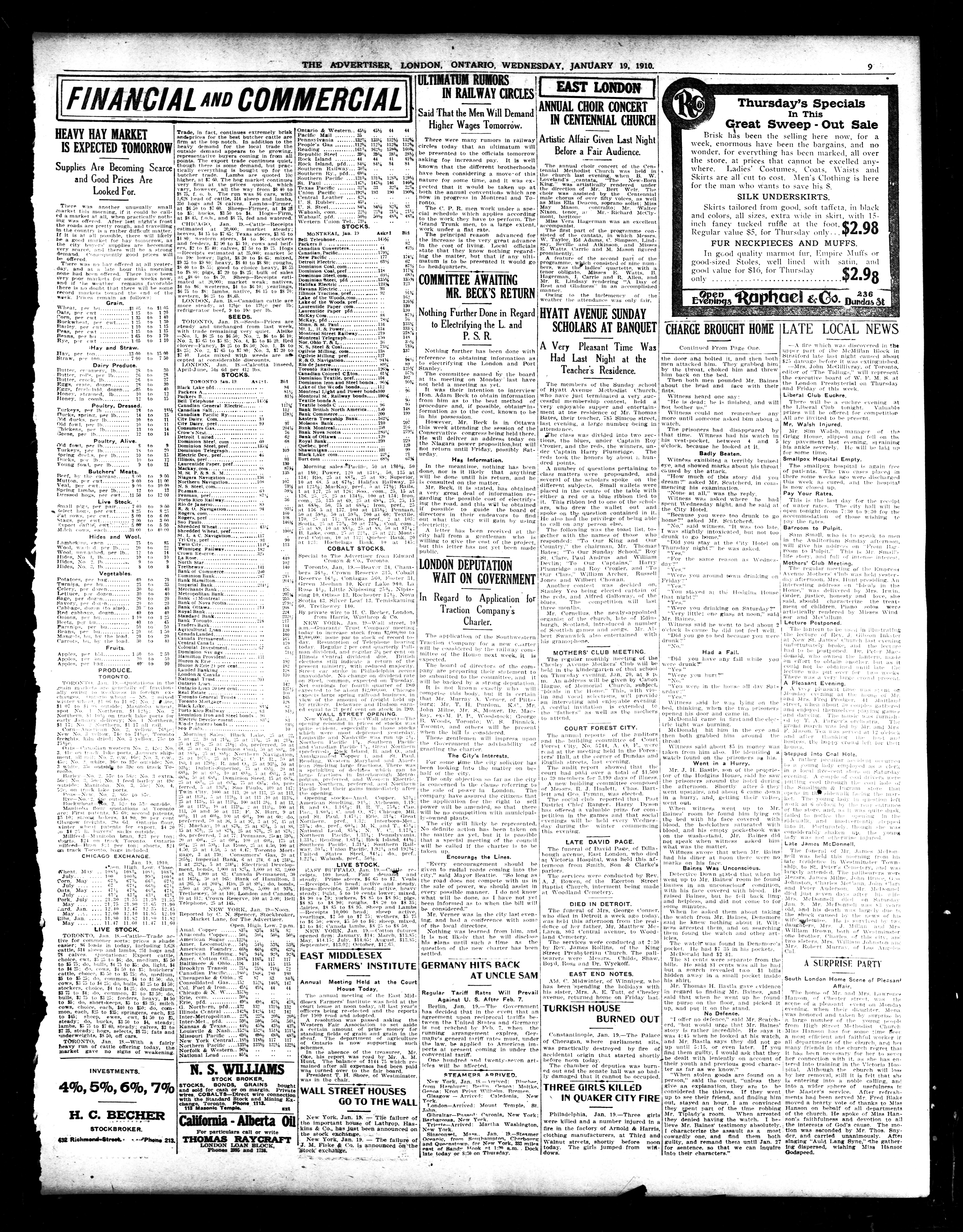 London advertiser. : London Advertiser : 46th Year, No. 19880 (January 19, 1910)