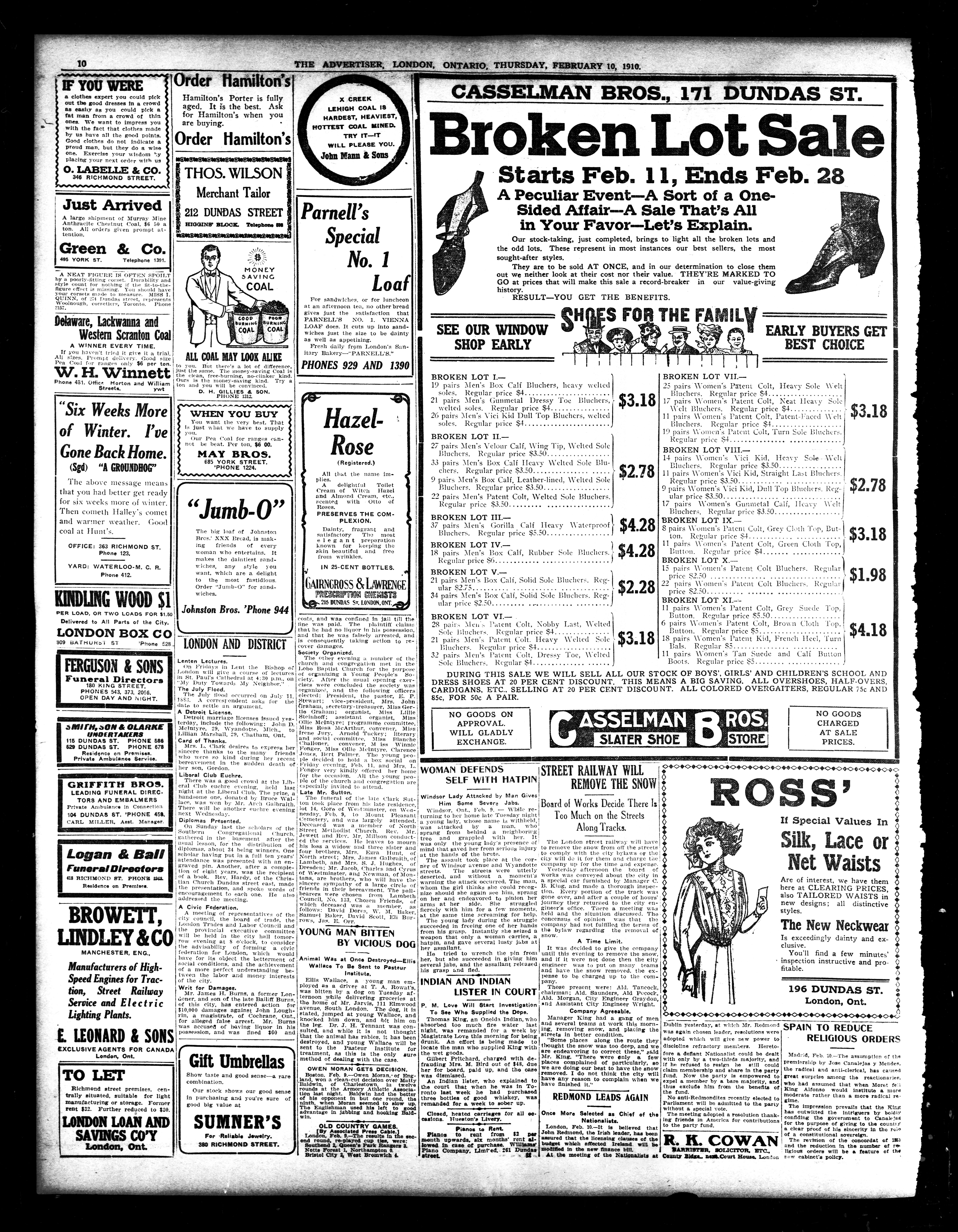 - London Advertiser : 46th Year, No. 19899 (February 10, 1910)