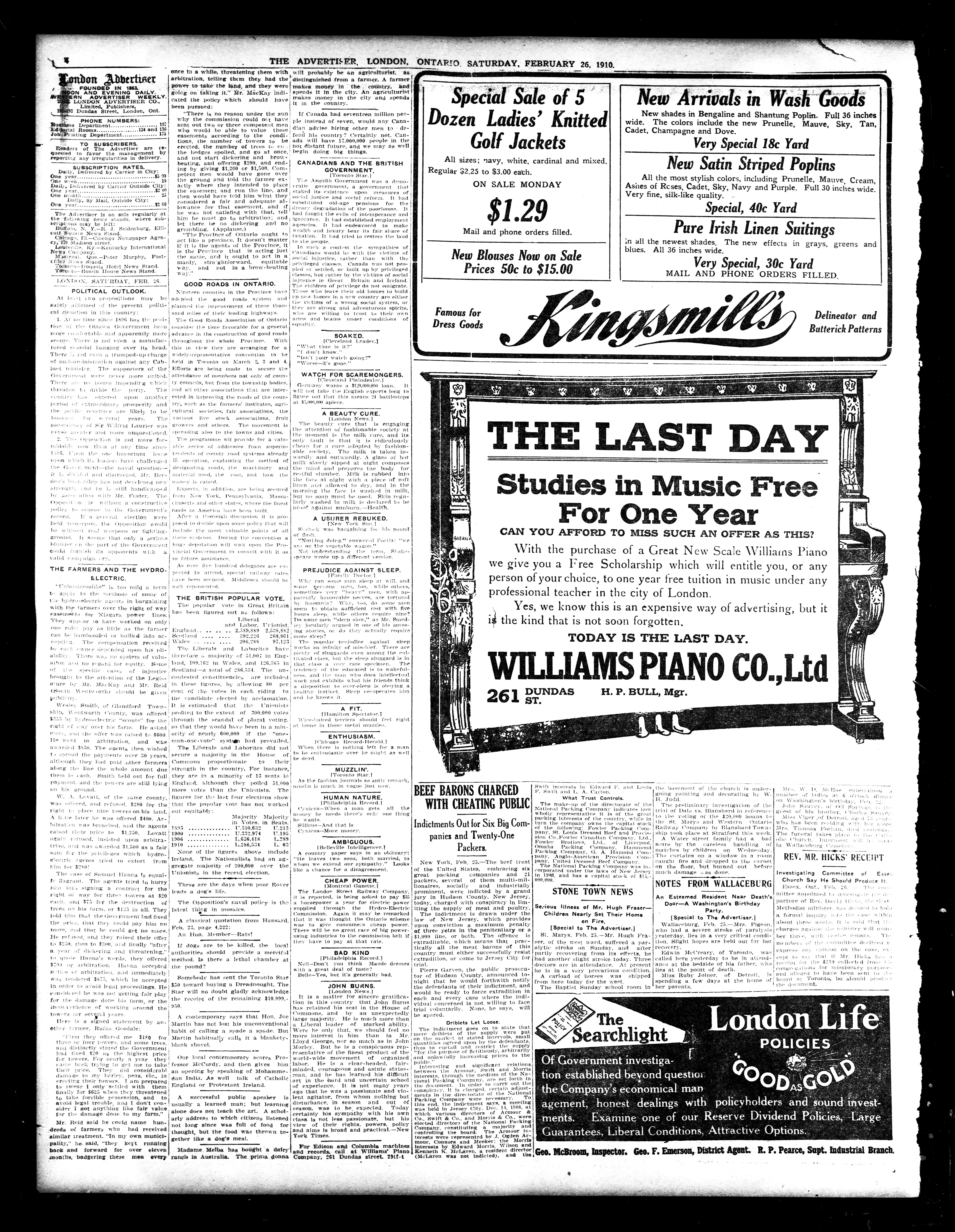 London advertiser. : London Advertiser : 46th Year, No. 19913 (February 26, 1910)