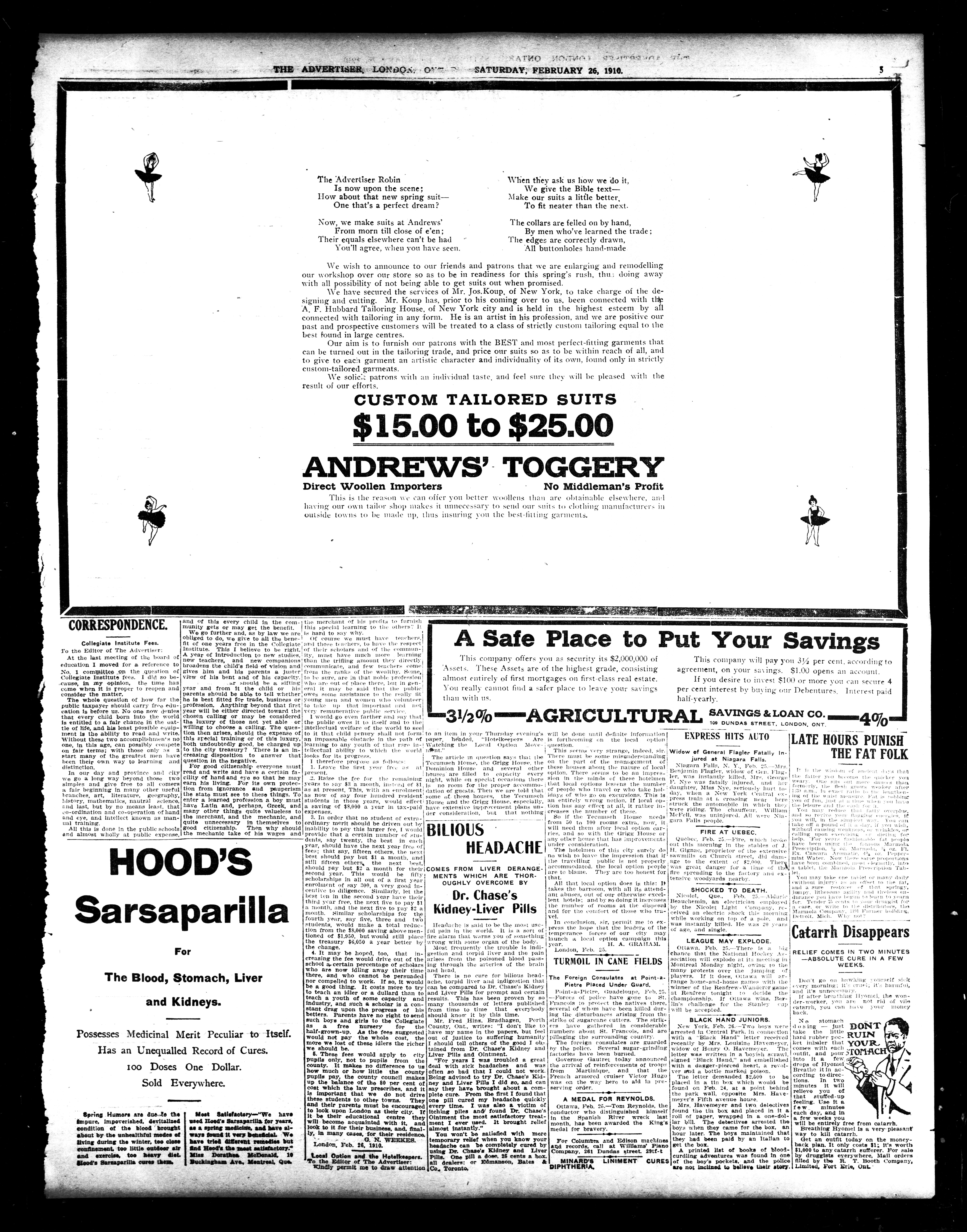 London advertiser. : London Advertiser : 46th Year, No. 19913 (February 26, 1910)