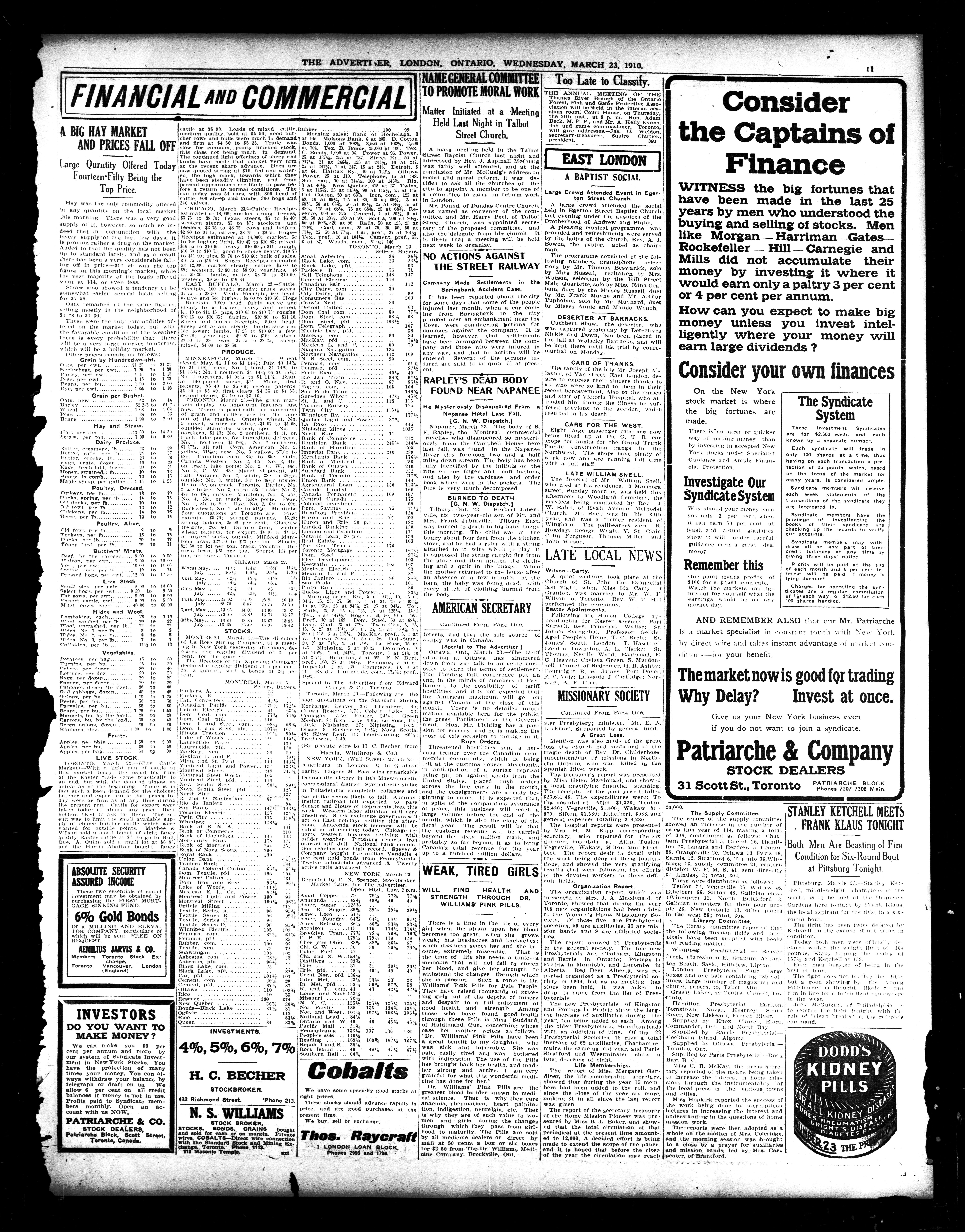 - London Advertiser : 46th Year, No. 19934 (March 23, 1910)