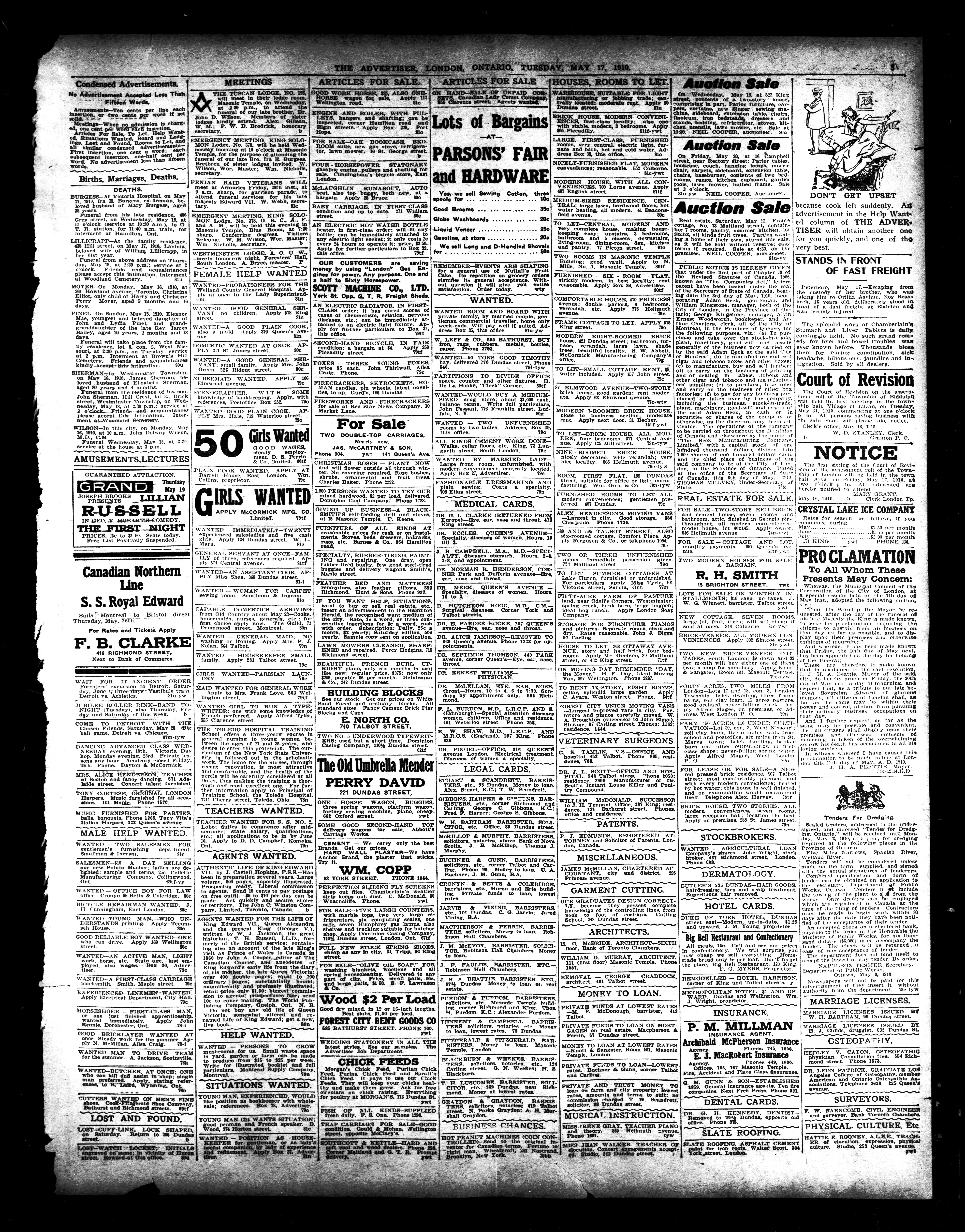 London advertiser. : London Advertiser : 46th Year, No. 19981 (May 17, 1910)