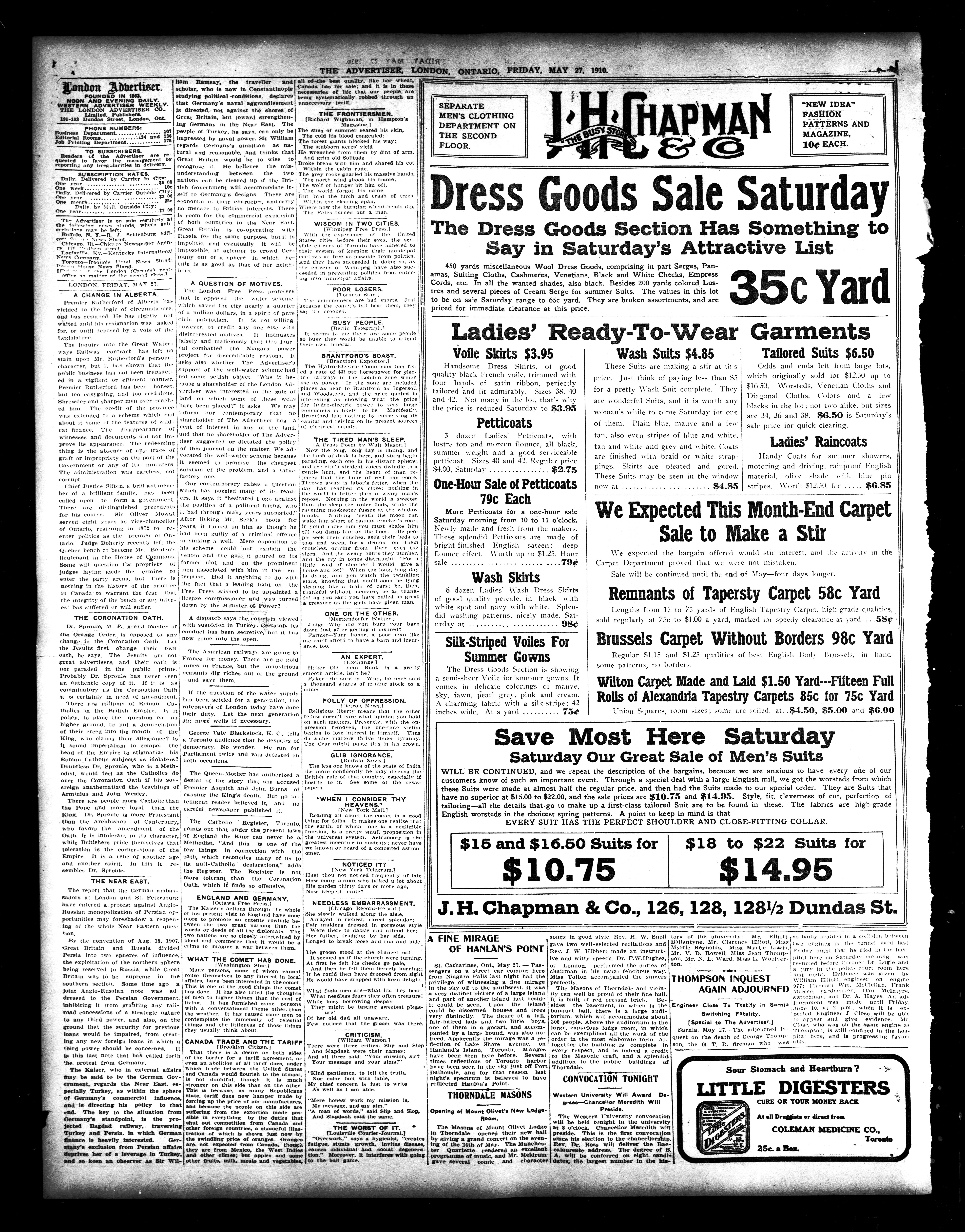- London Advertiser : 46th Year, No. 19990 (May 27, 1910)