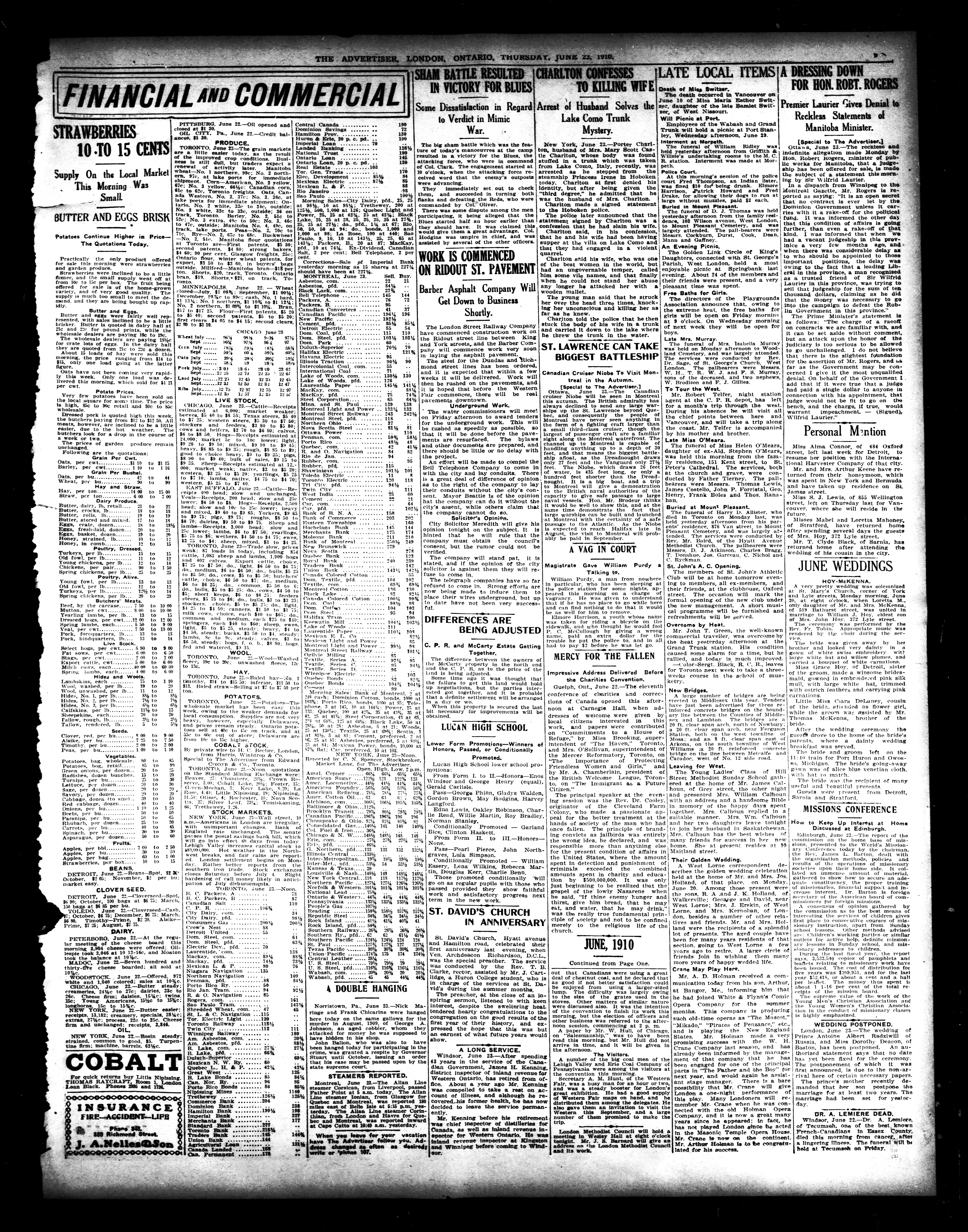 London advertiser. : London Advertiser : 46th Year, No. 20013 (June 23, 1910)