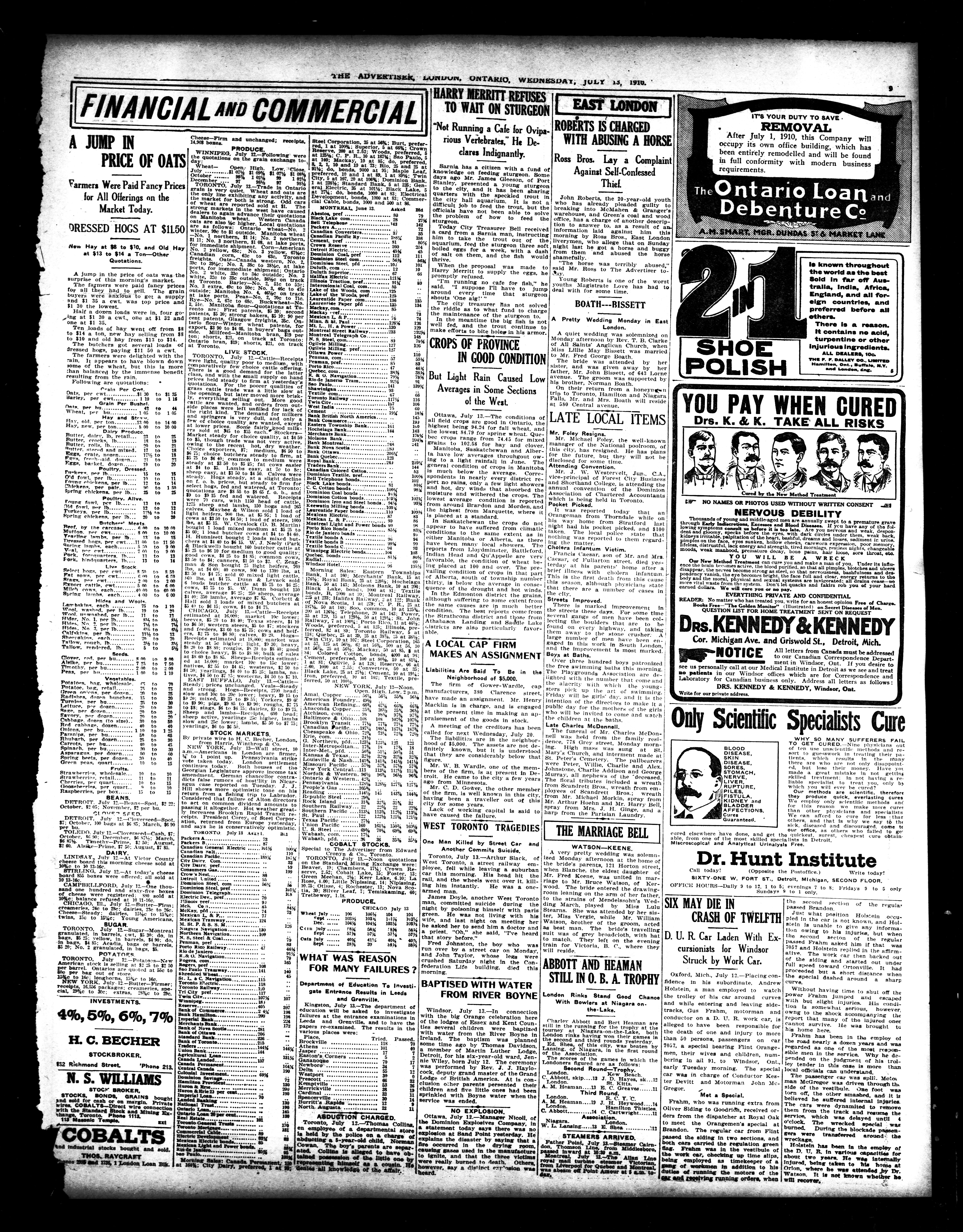 London advertiser. : London Advertiser : 46th Year, No. 20030 (July 13, 1910)