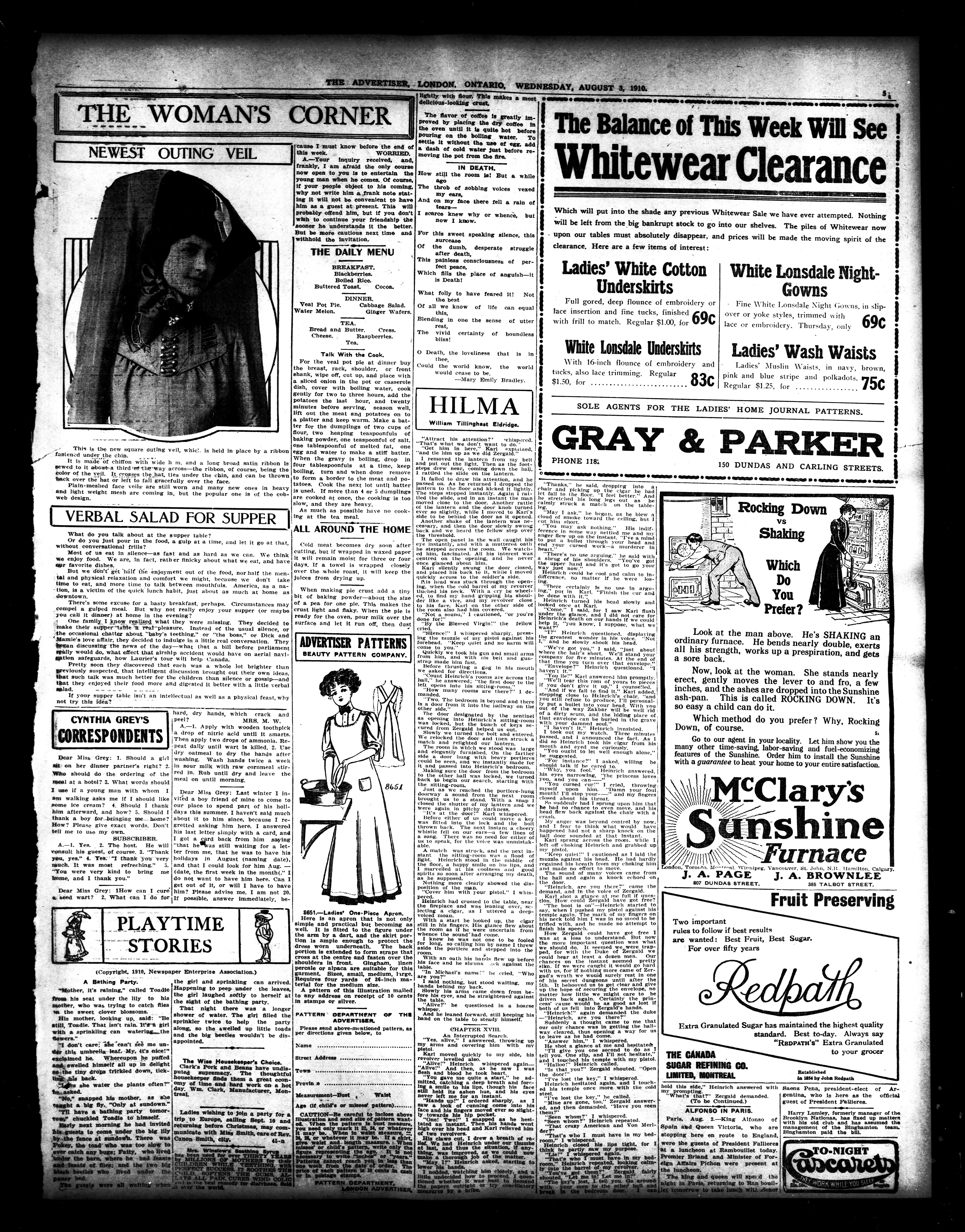 London advertiser. : London Advertiser : 46th Year, No. 20048 (August 3, 1910)