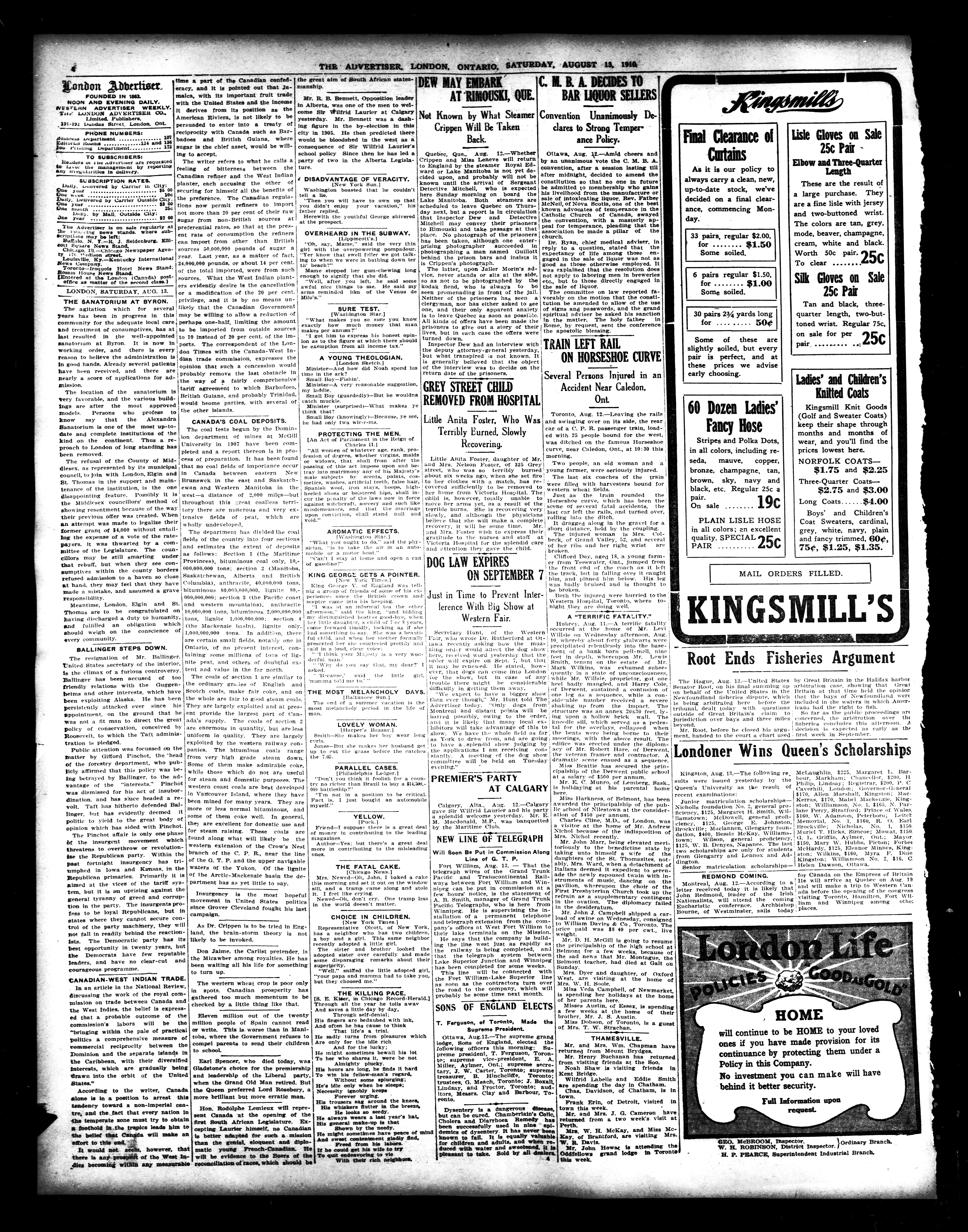 - London Advertiser : 46th Year, No. 20057 (August 13, 1910)