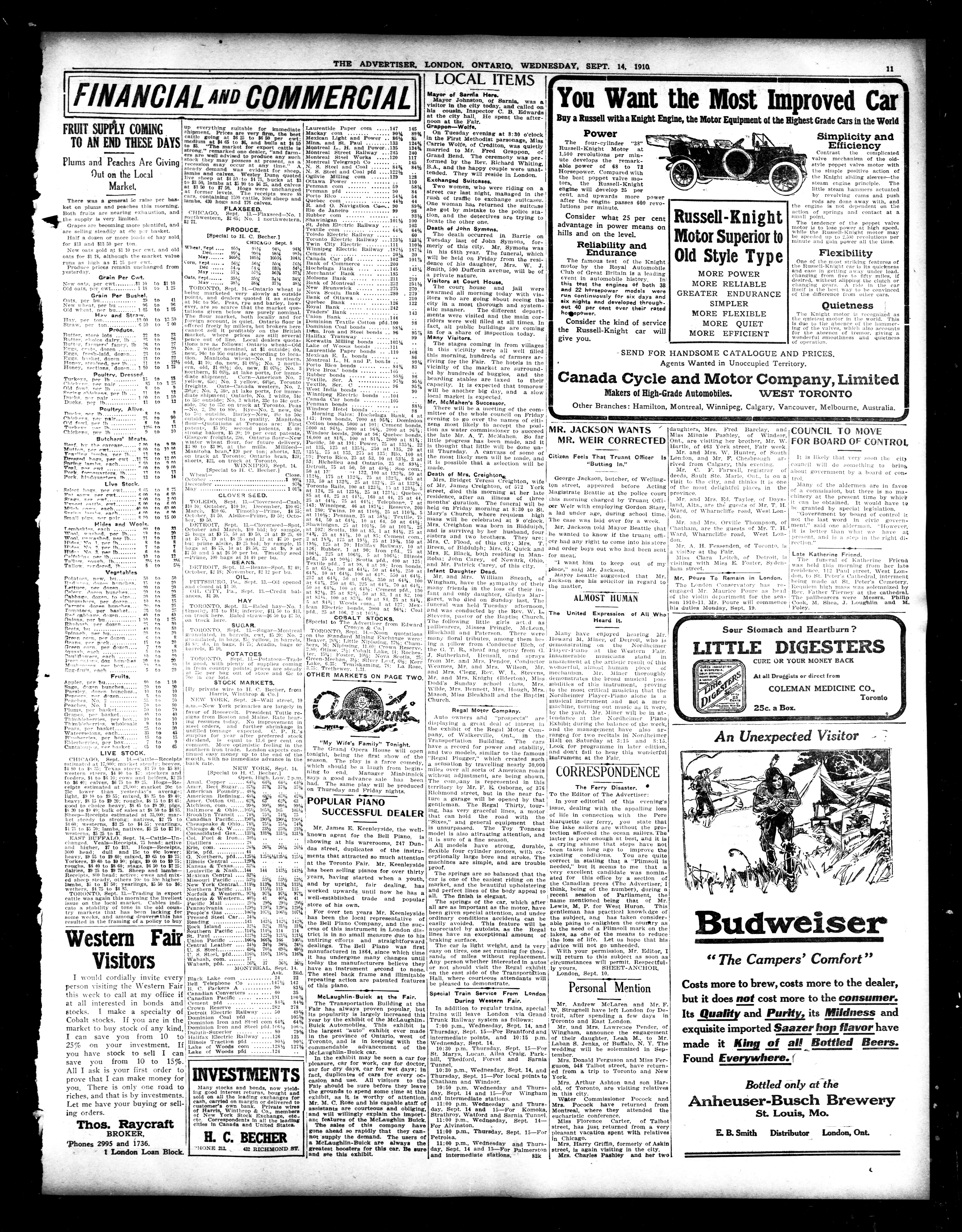 London advertiser. : London Advertiser : 46th Year, No. [20084] (Sept. 14, 1910)