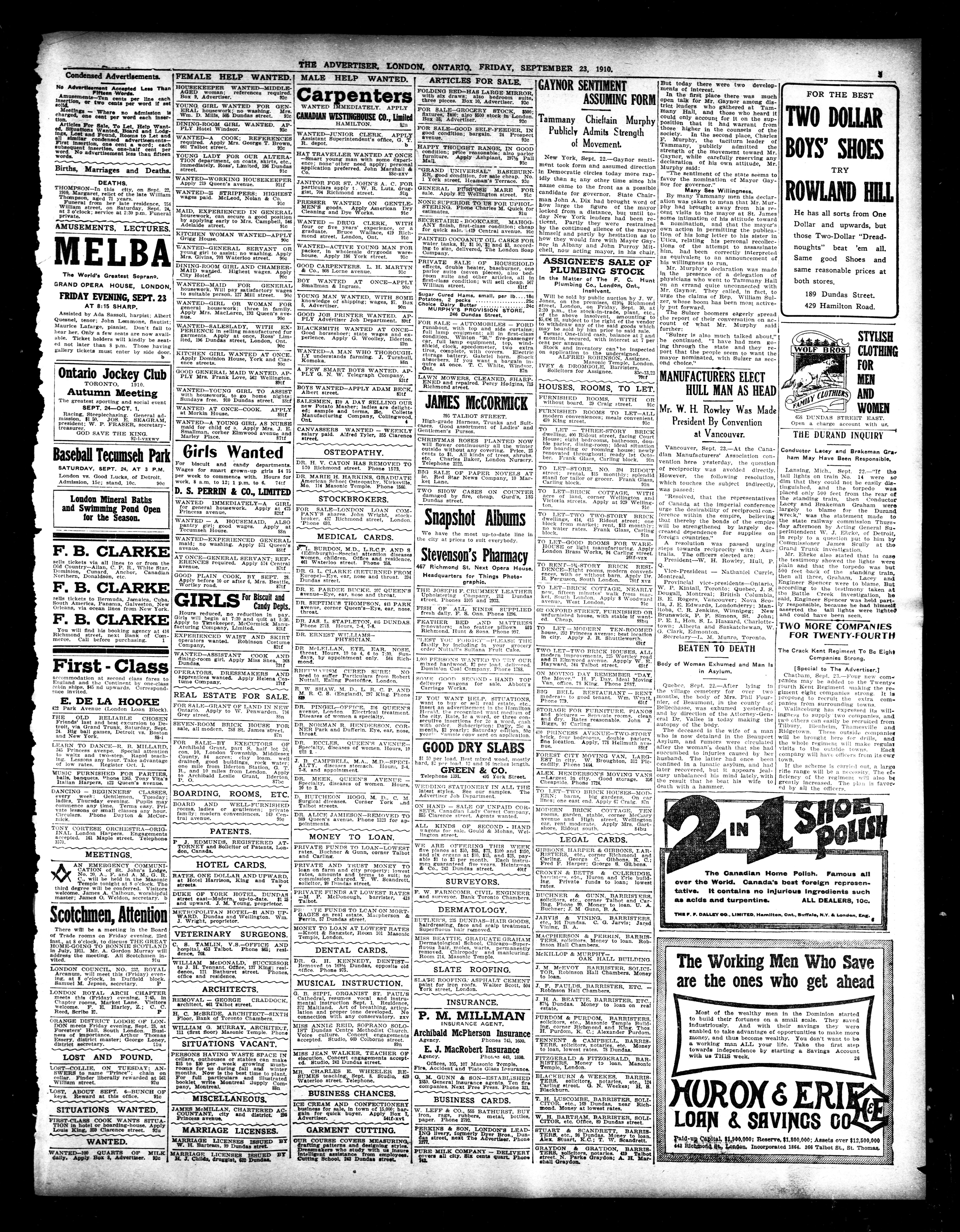 - London Advertiser : 46th Year, No. 20092 (Sept. 23, 1910)