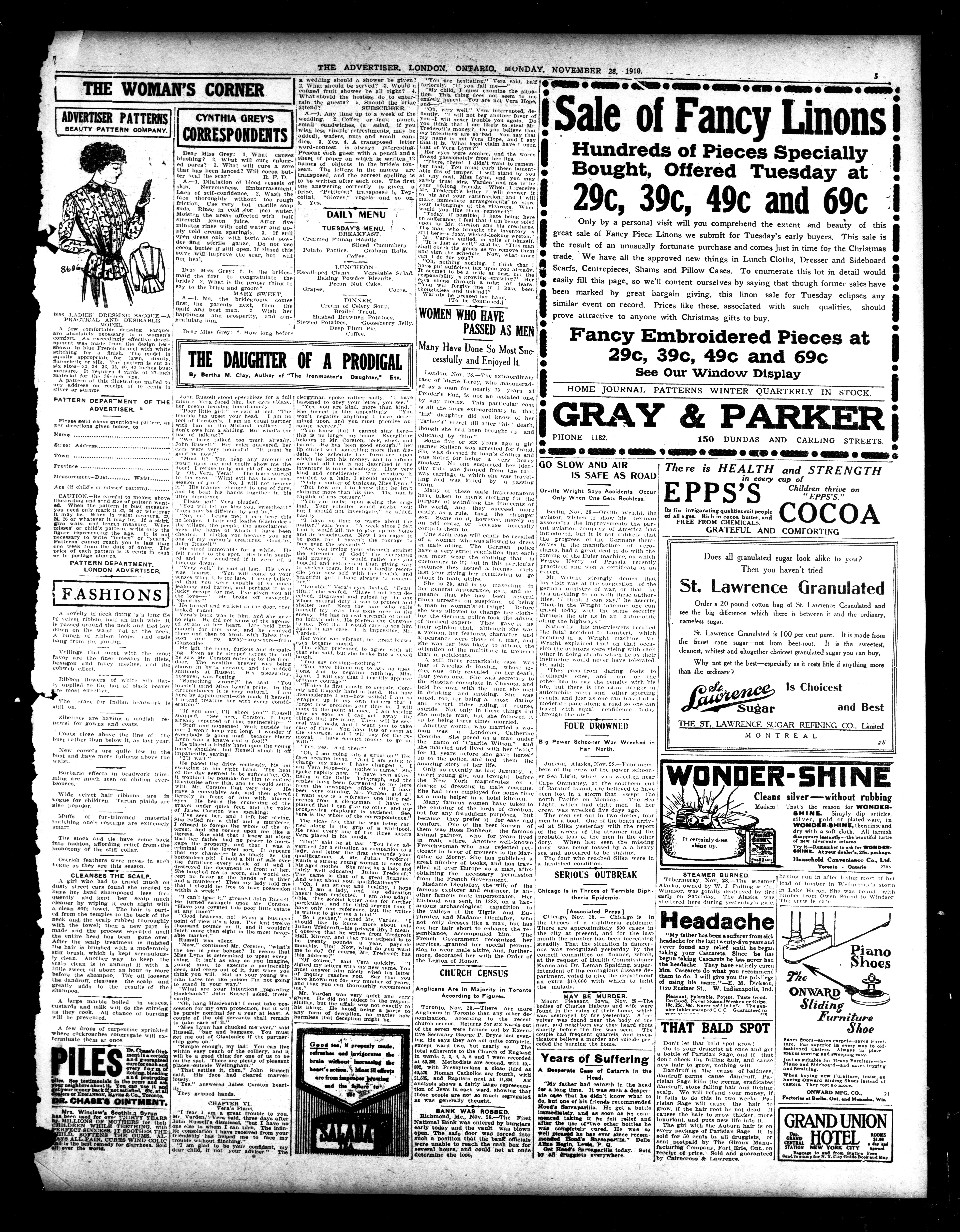 London advertiser. : London Advertiser : 47th Year, No. 20148 (November 28, 1910)