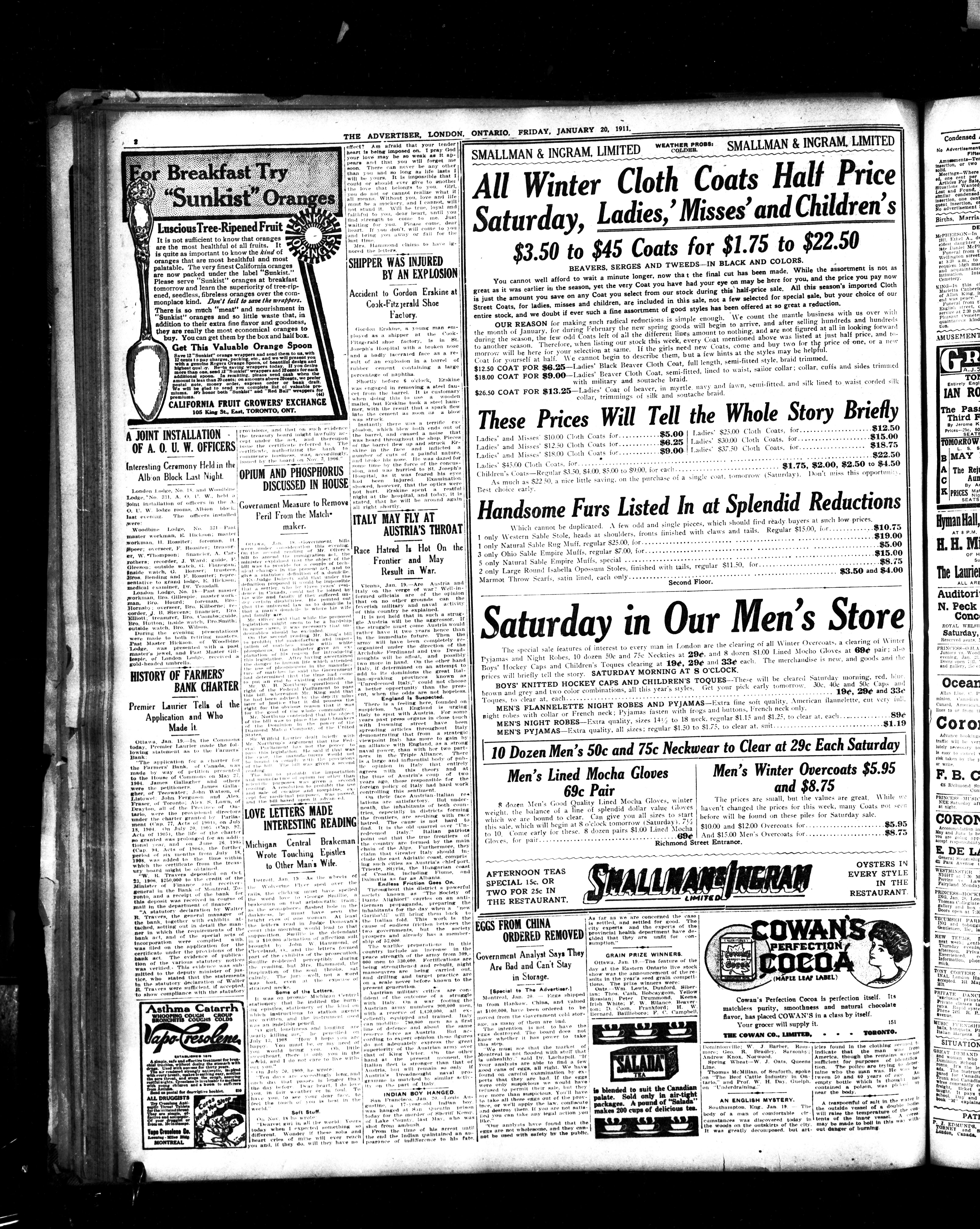 London advertiser. : London Advertiser : 47th Year, No. 20194 (January 20, 1911)