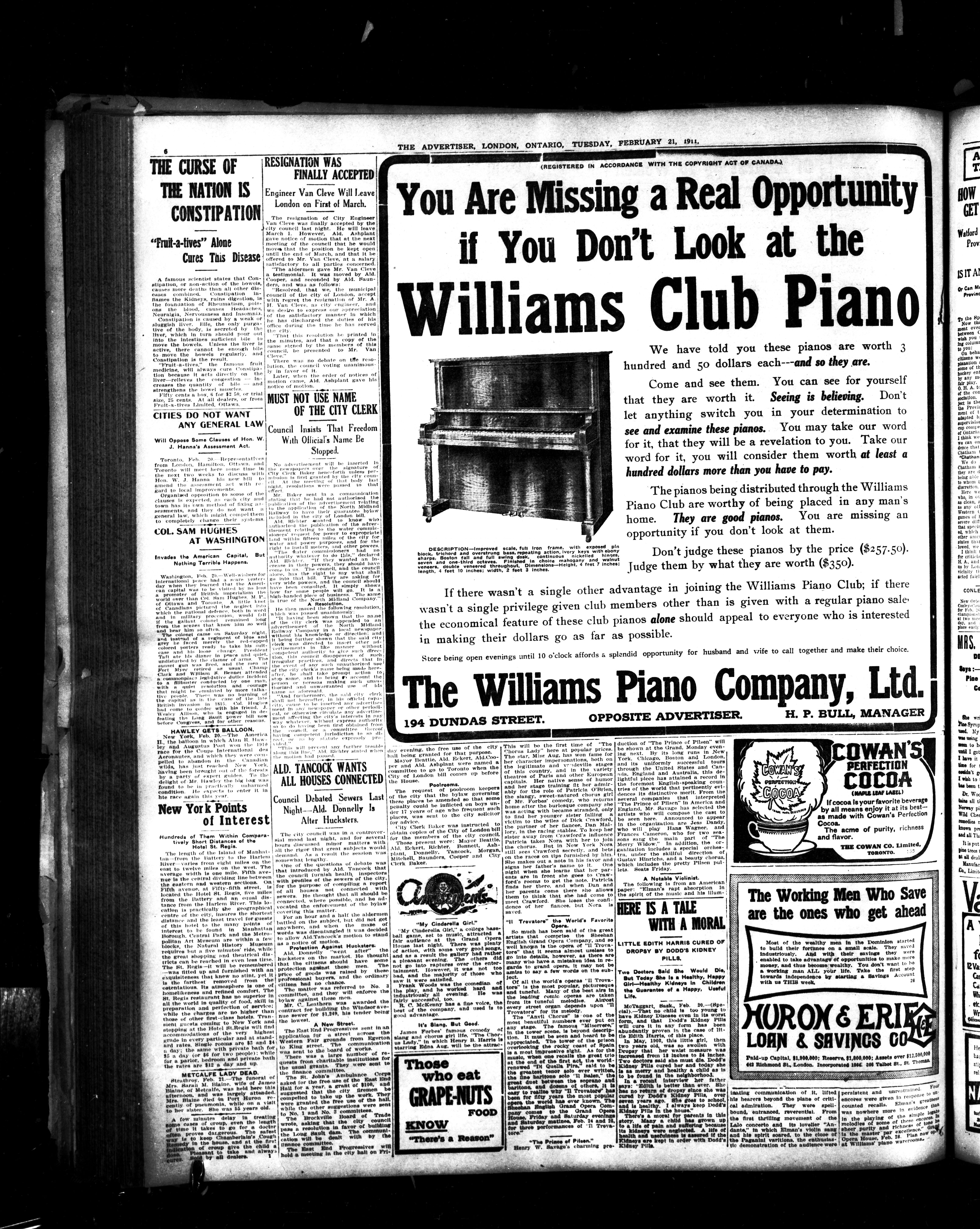 London advertiser. : London Advertiser : 47th Year, No. 20221 (February 21, 1911)