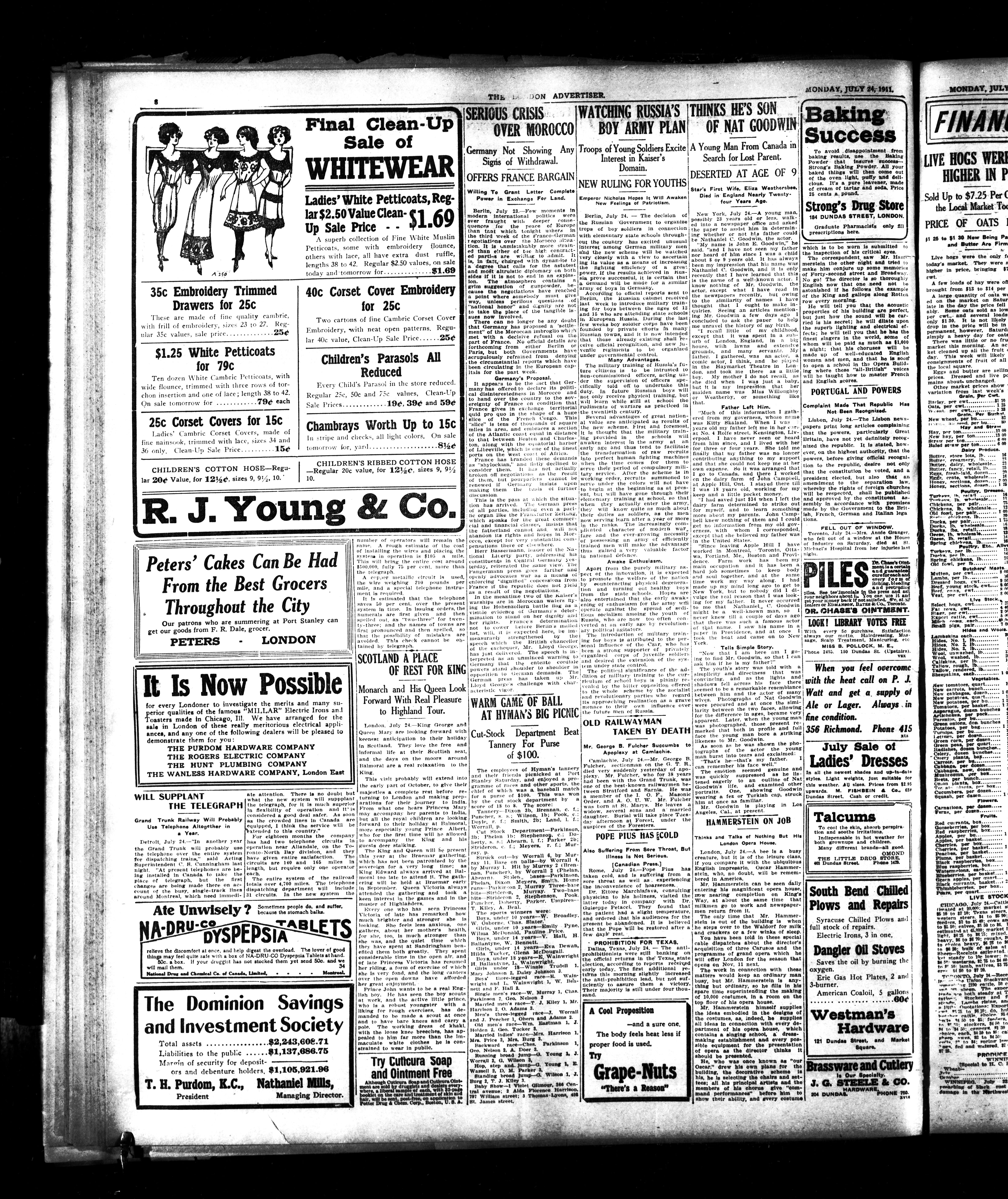 London Advertiser : 47th Year, No. 20352 (July 24, 1911)