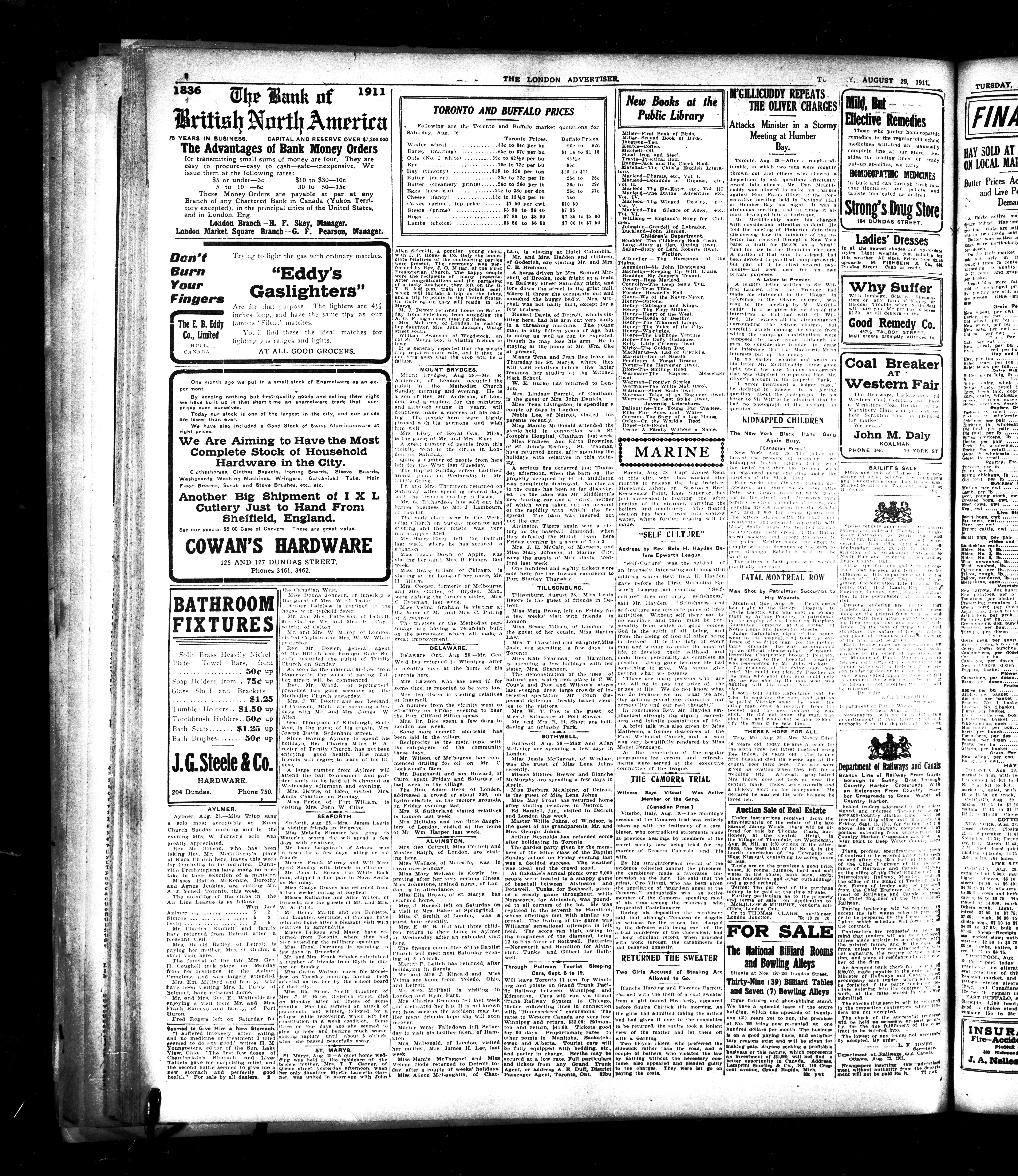 London advertiser. : London Advertiser : 47th Year, No. 20383 (August 29, 1911)