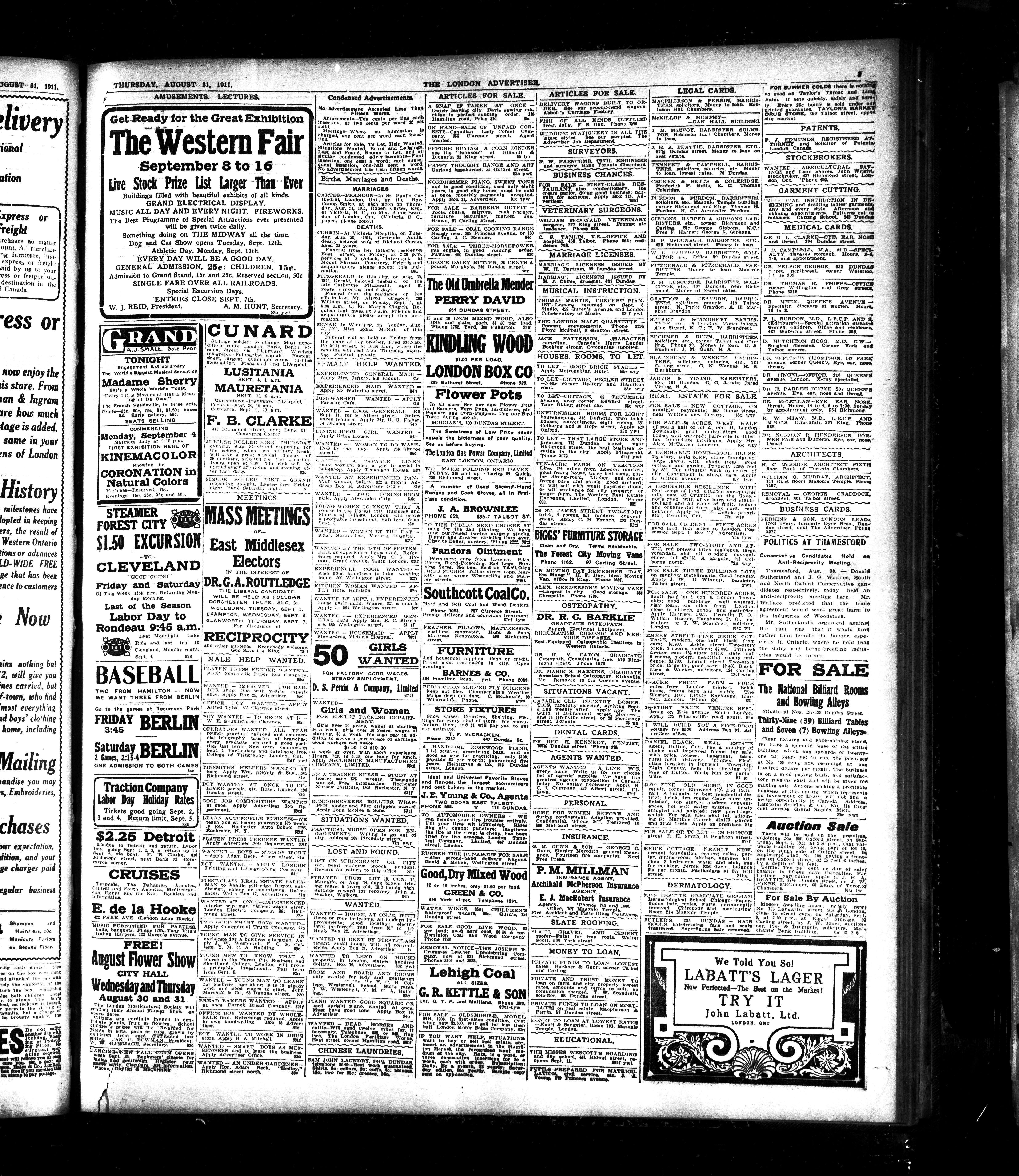 London advertiser. : London Advertiser : 47th Year, No. 20385 (August 31, 1911)
