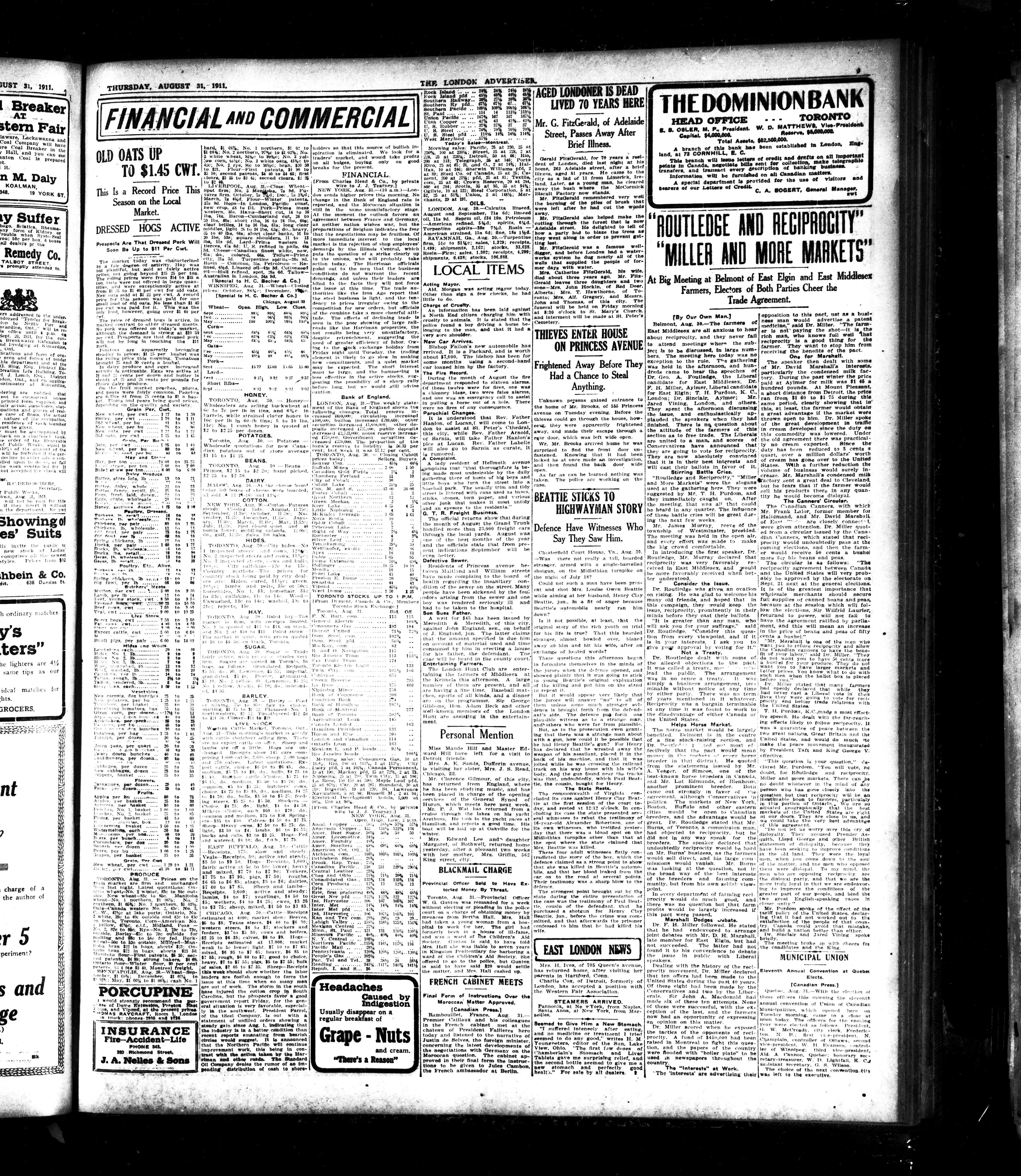 London advertiser. : London Advertiser : 47th Year, No. 20385 (August 31, 1911)