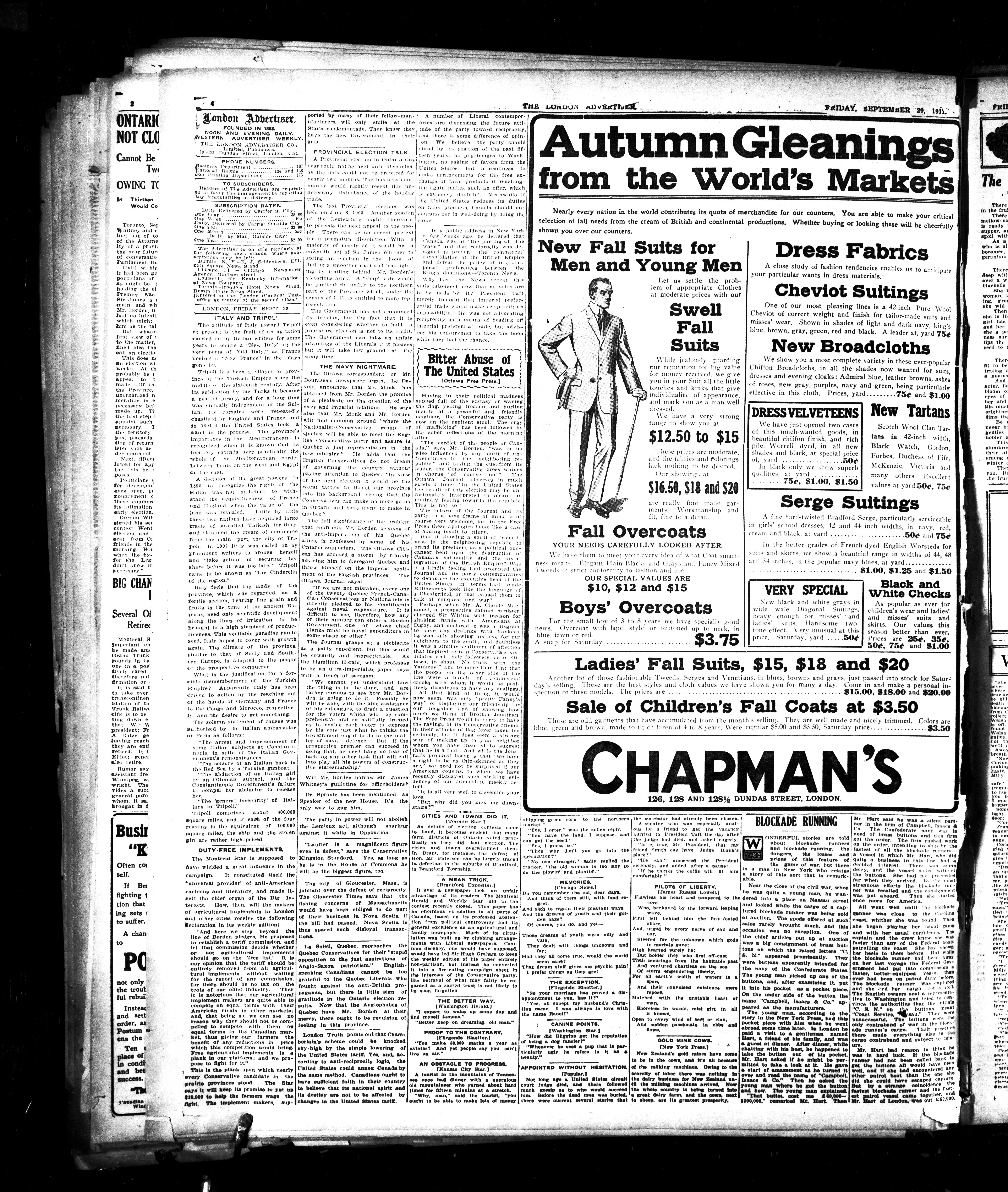 London advertiser. : London Advertiser : 47th Year, No. 20410 (September 29, 1911)