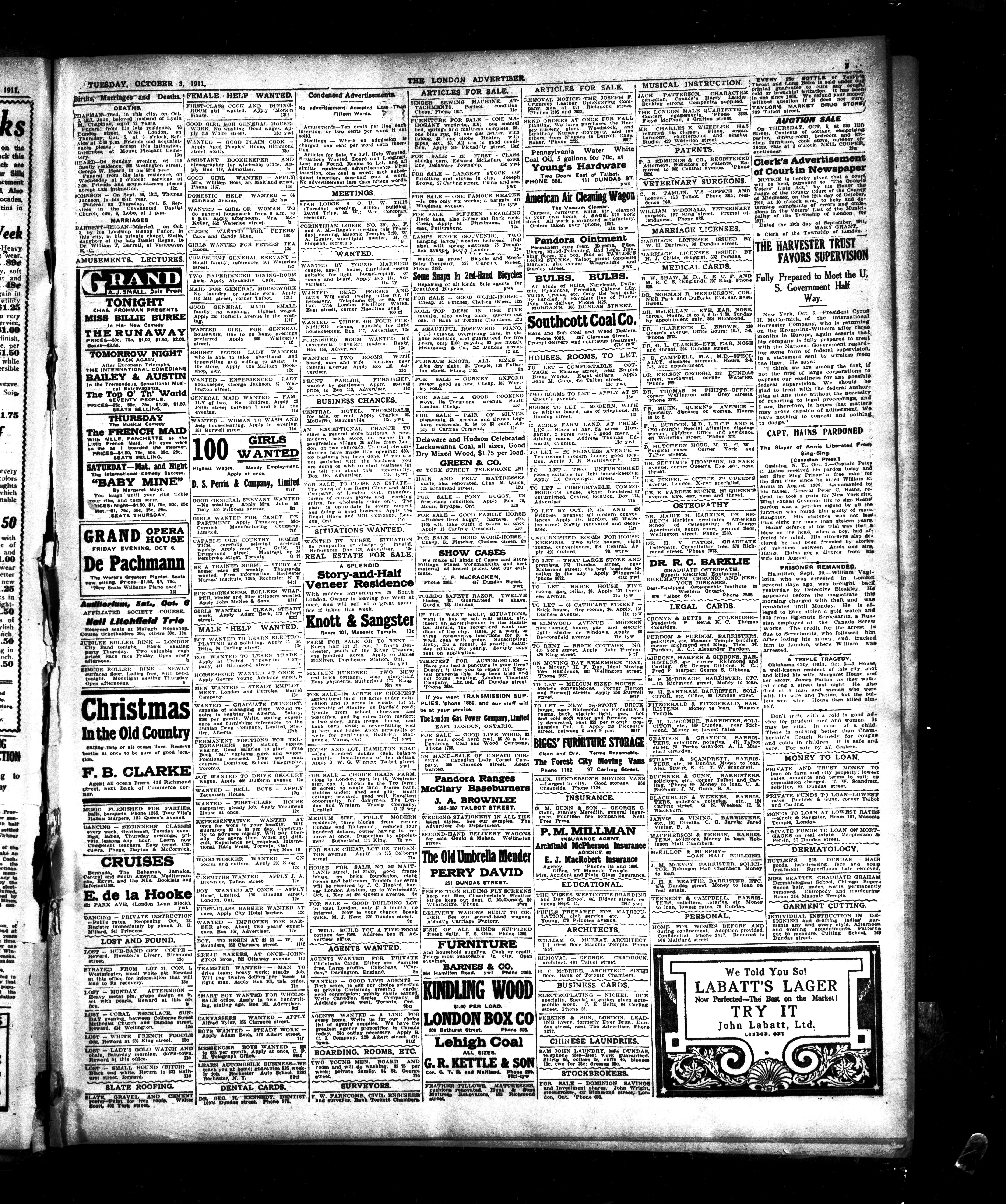 London advertiser. : London Advertiser : 47th Year, No. 20413 (October 3, 1911)