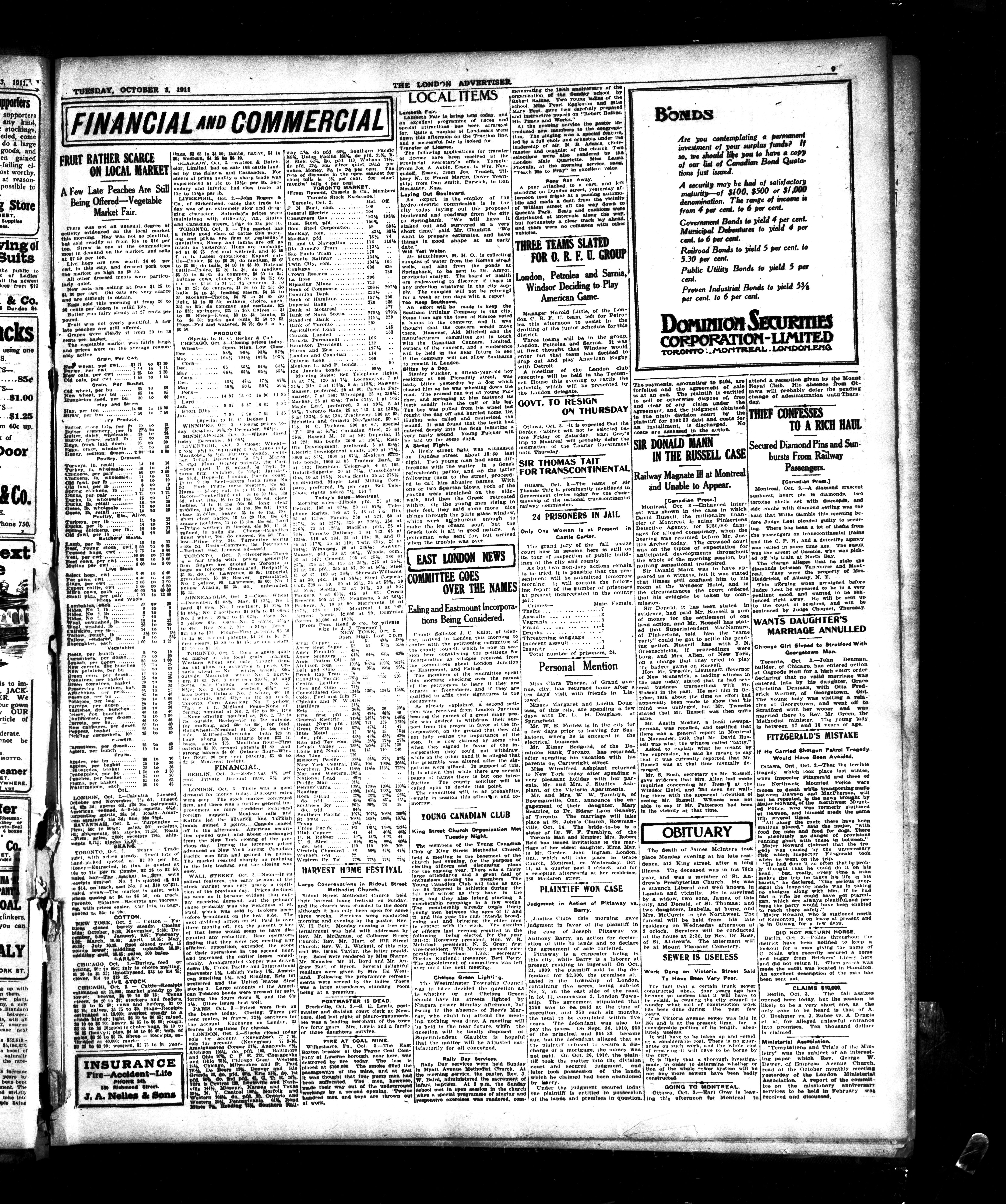 London advertiser. : London Advertiser : 47th Year, No. 20413 (October 3, 1911)