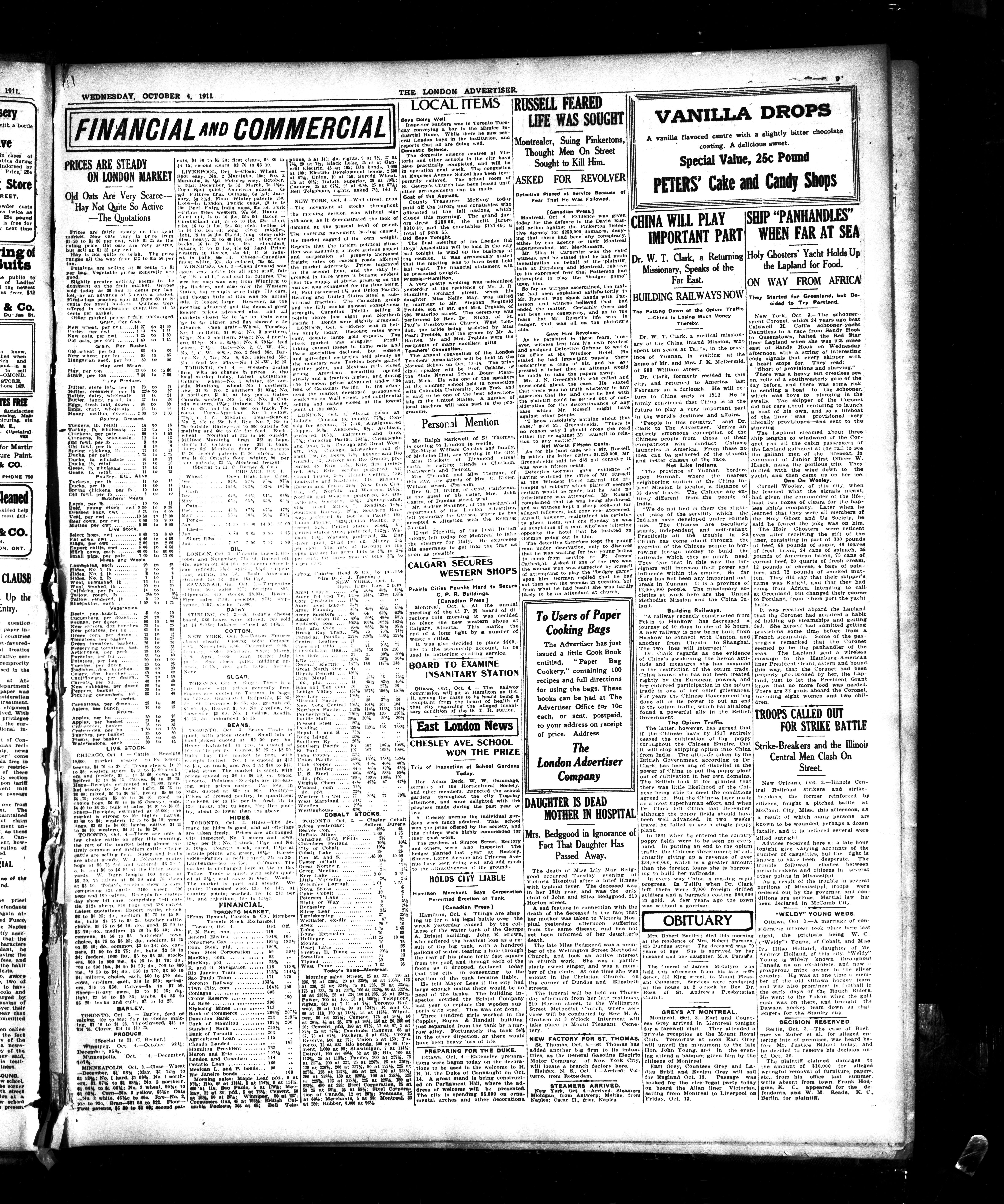 London advertiser. : London Advertiser : 47th Year, No. 20414 (October 4, 1911)