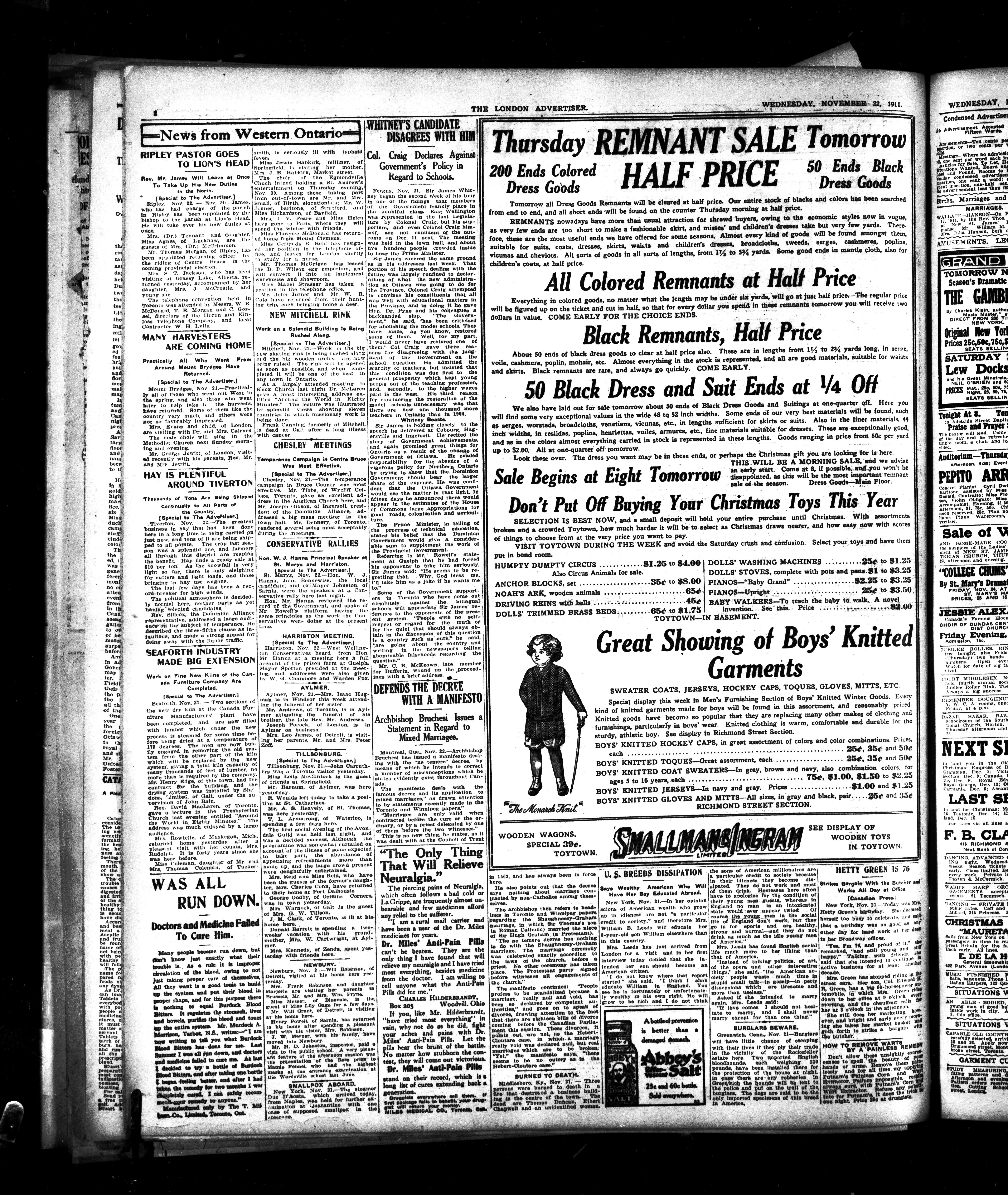 London advertiser. : London Advertiser : 47th Year, No. 20456 (November 22, 1911)
